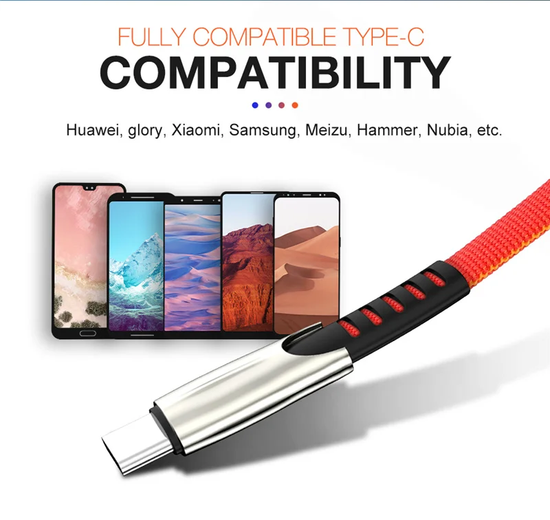 Кабель USB Type C для Xiaomi Redmi K20 Pro, Mi 9, 10, Samsung S20, ...