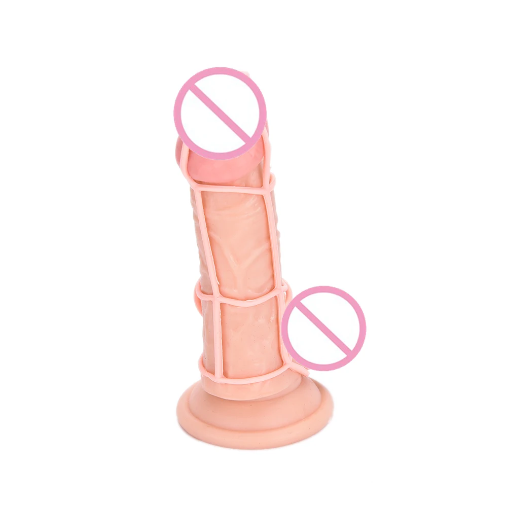 Увеличитель, кольцо-сетка для продления, Силиконовая сетка для пениса, кольцо для полового члена, усиленный, сладкий, декорации в клетке, мужские секс-товары для мужского пениса