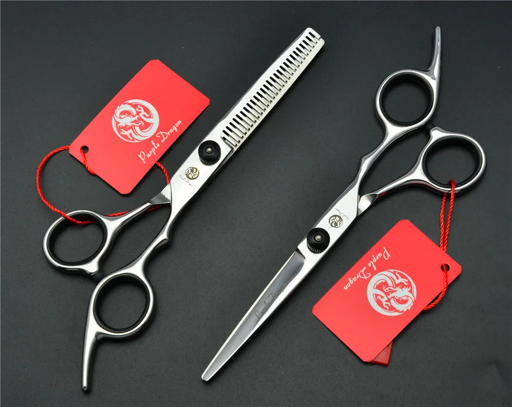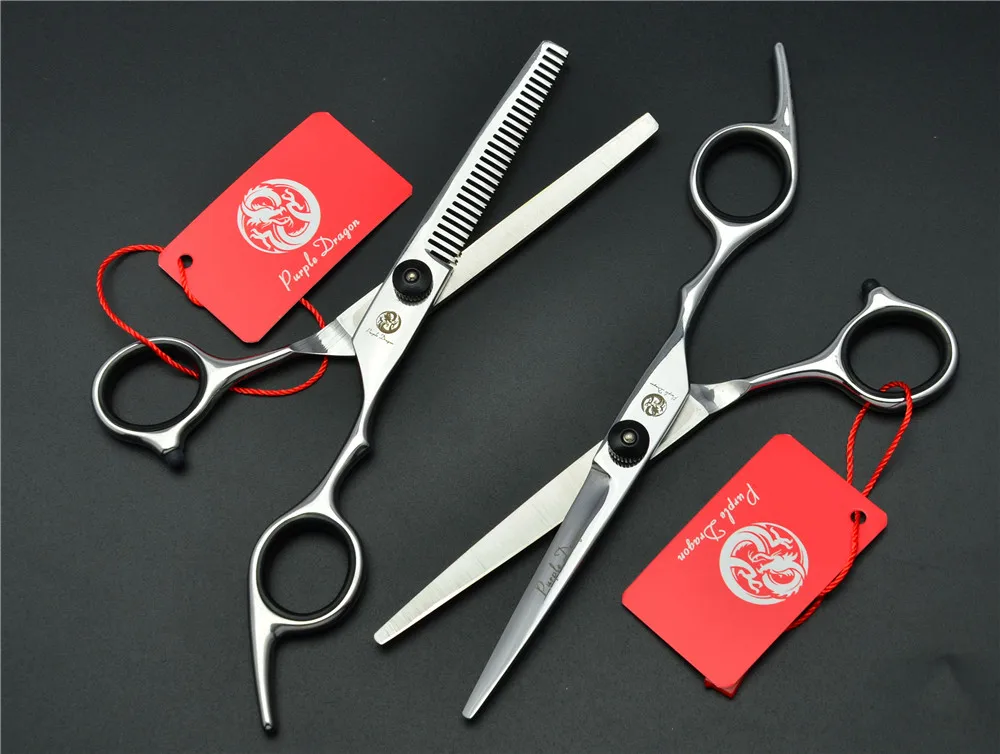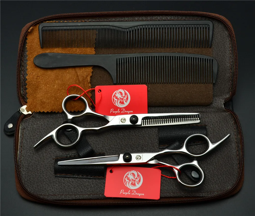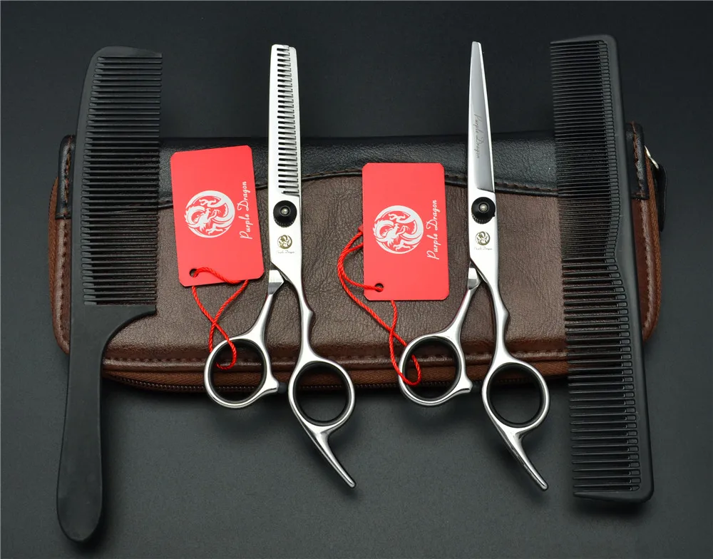 Профессиональные Парикмахерские ножницы с черным и фиолетовым драконом, комплект из 4 парикмахерских гребней, ножниц для стрижки и филировки, 6 дюймов