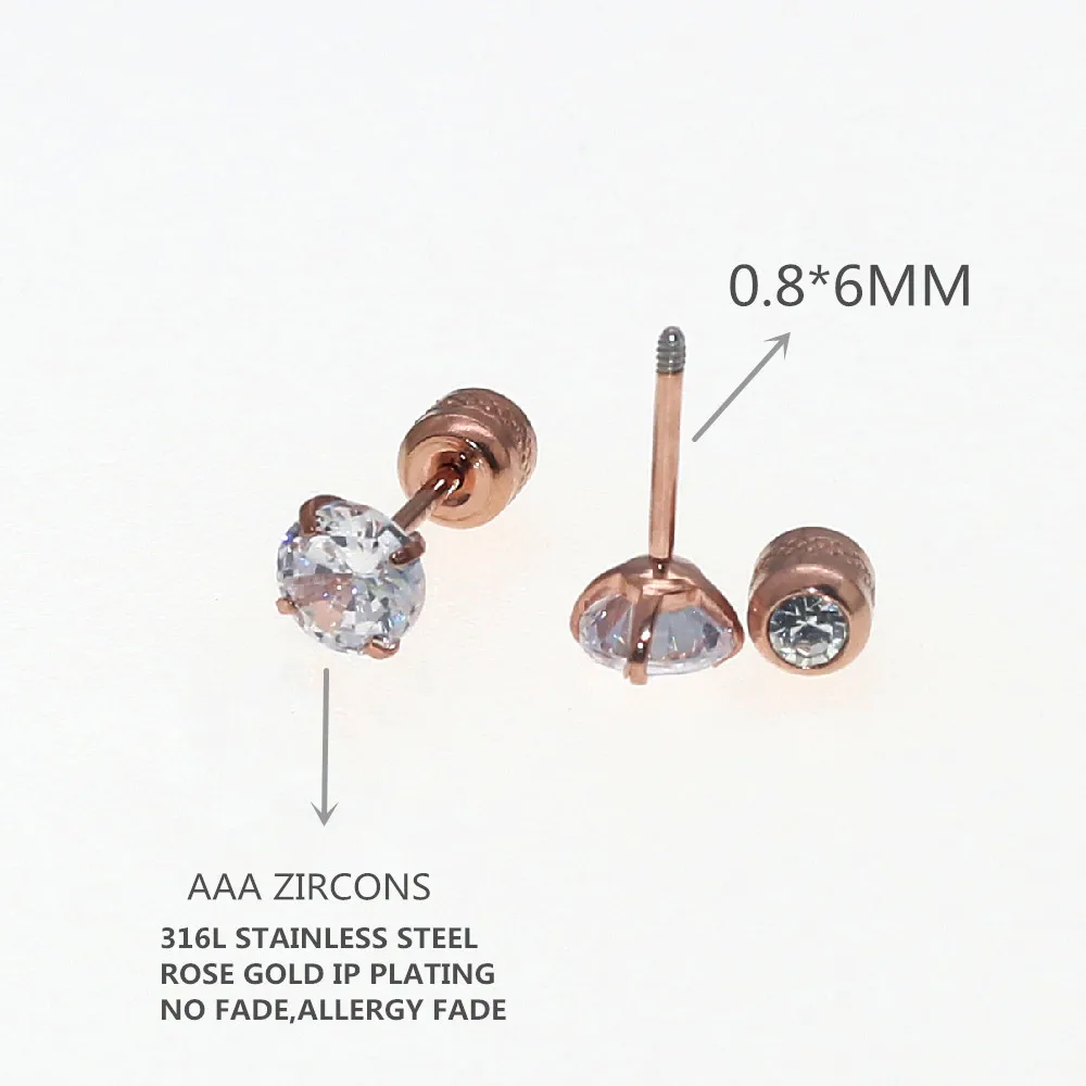 Сережки из нержавеющей стали 316L с розово-золотым покрытием, сережки с круглым цирконием AAA, не выцветают, гипоаллергенные ювелирные изделия высокого качества
