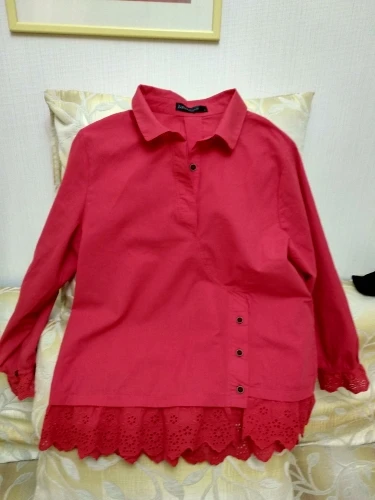 Посылка входит: 1 блузкаМатериал: 100% хлопокЦвета: черный, красный, фиолетовый, розовыйРазмер: S,M,L,XL,2XL,Длина рукава: полный рукавВырез: отложной воротникУзор: однотонныйПряжка-цепочка: пуговица спередиУкрашение: кружевоСтиль: ДосугСезон: ОсеньПовод: семьяВнимание:1. Реальный товар может немного отличаться по цвету по сравнению с изображениями на разных мониторах компьютеров. Будьте осторожны при обращении, спасибо.2. Возможна погрешность в 1-3 см из-за ручного измерения. Приносим извинения за неудобства.3. Пожалуйста, ориентируйтесь на реальный товар, изображения модели только для справки.4. Внимание! Пожалуйста, внимательно проверьте таблицу размеров перед размещением заказа.
