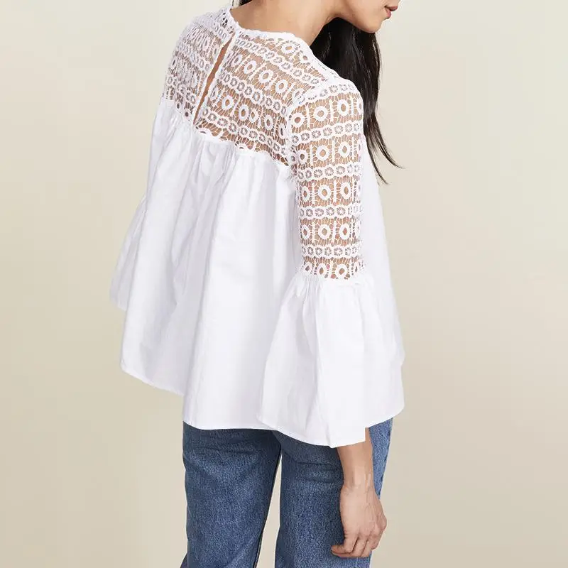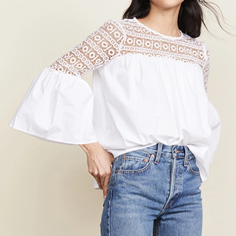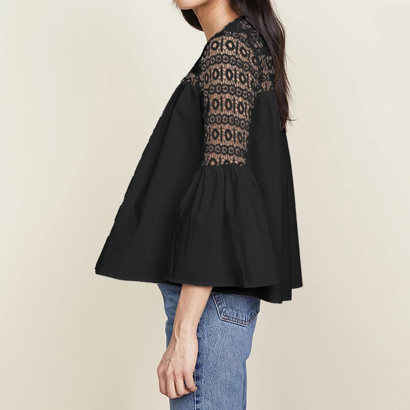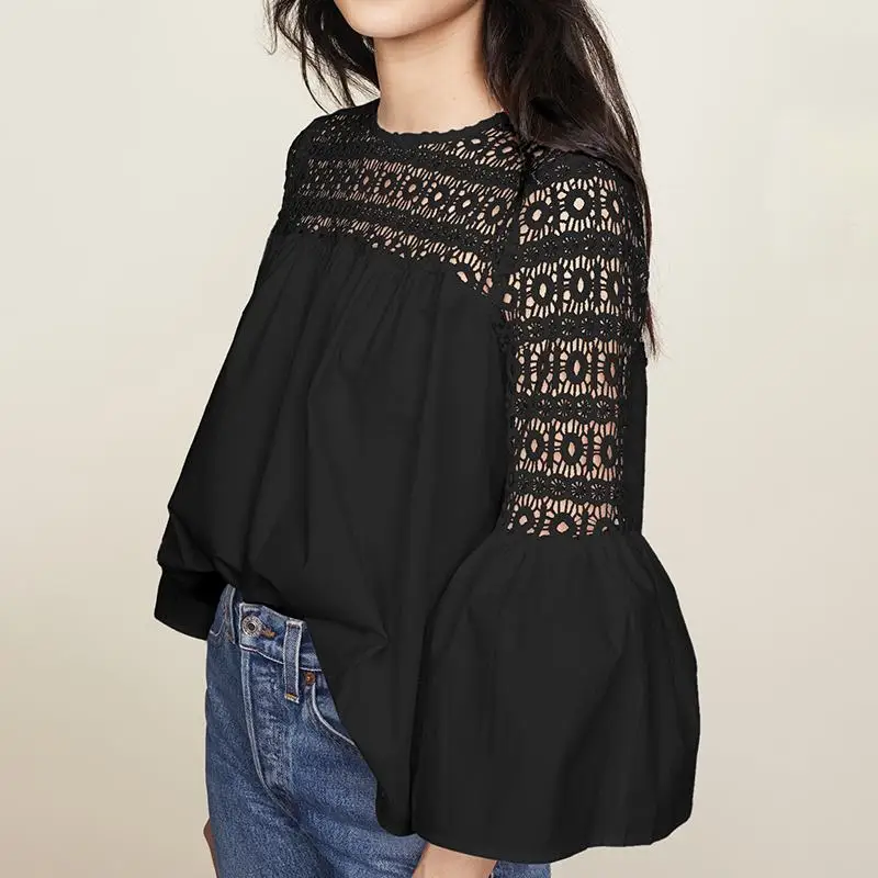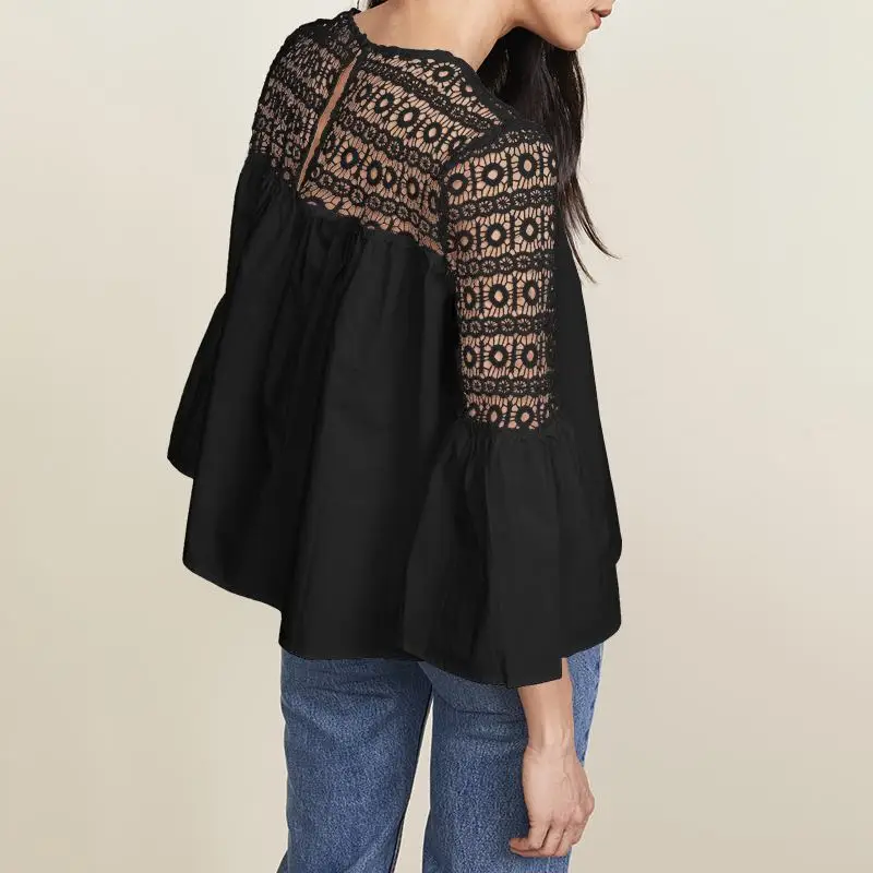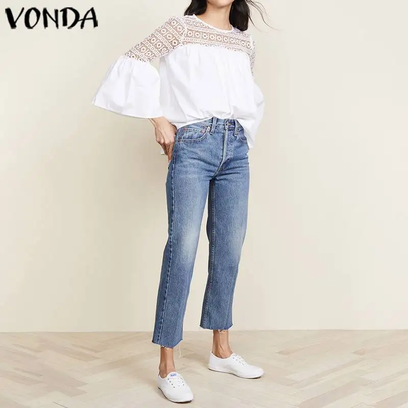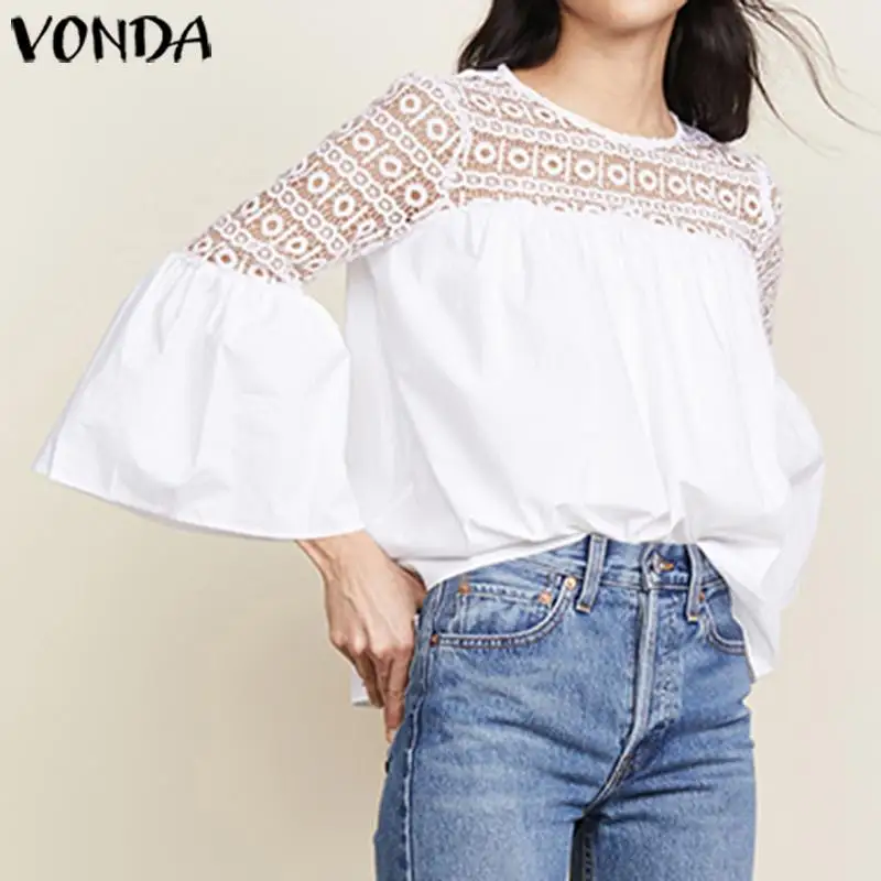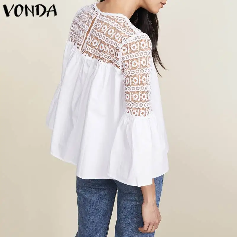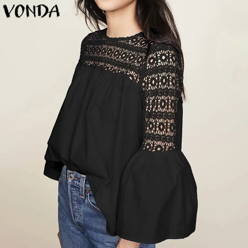 Женские кружевные топы VONDA, богемные вечерние открытые топы, Пляжная туника свободного покроя с рукавом 34 и расклешенными рукавами, лето 2020