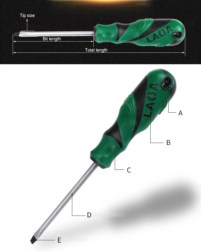 Отвертка шлицевая LAOA S2, 1 шт., материал Phillips, двухцветная ру...