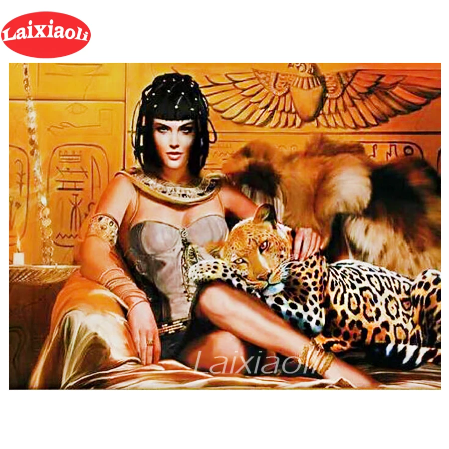 Полная выкладка Клеопатра, Египет, алмазов картина большой леопард Алмазная мозаика для девочек изображение Стразы Алмазная вышивка Декор