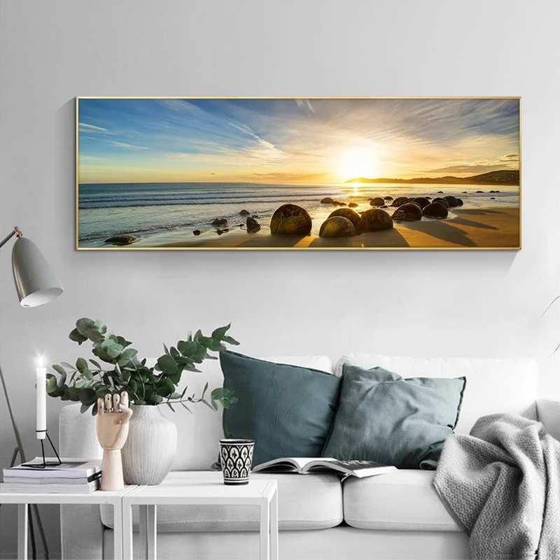 Prints canvas painting poster homeScandinavian Landscape Oil Paintings Sunset Sea Panorama