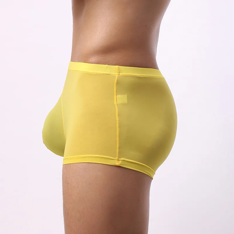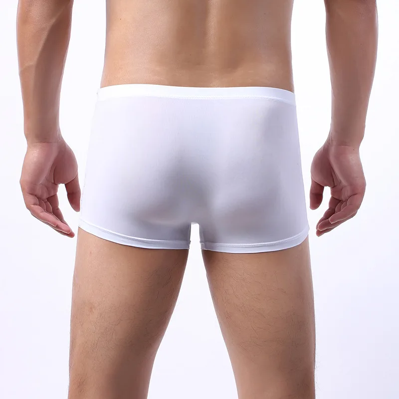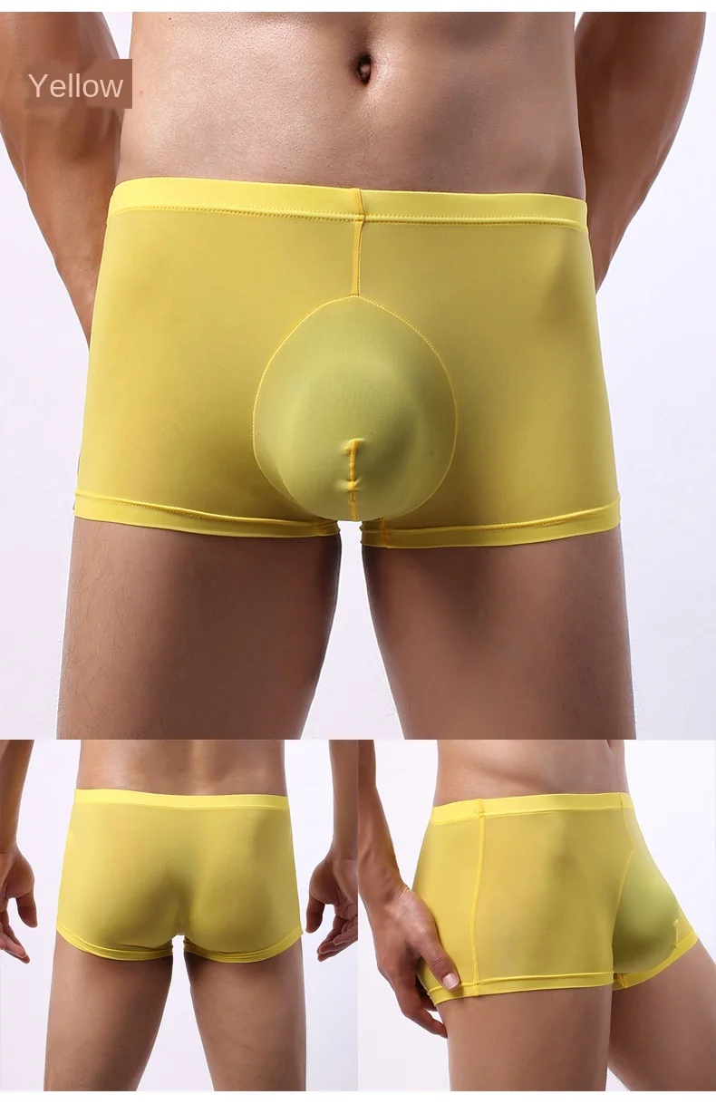 2020New Для мужчин нижнее белье Прозрачный ледяной шелк брюки сексуальные трусы-шортики с заниженной талией шорты перспектива Однотонные трусы брюки