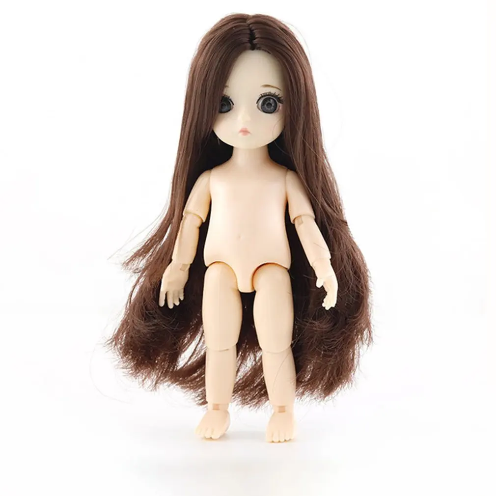 Q Версия 16 см шарнирная кукла DIY голый тело кудрявые прямые волосы девочка подарок с 3D глазами голова куклы игрушки для детей