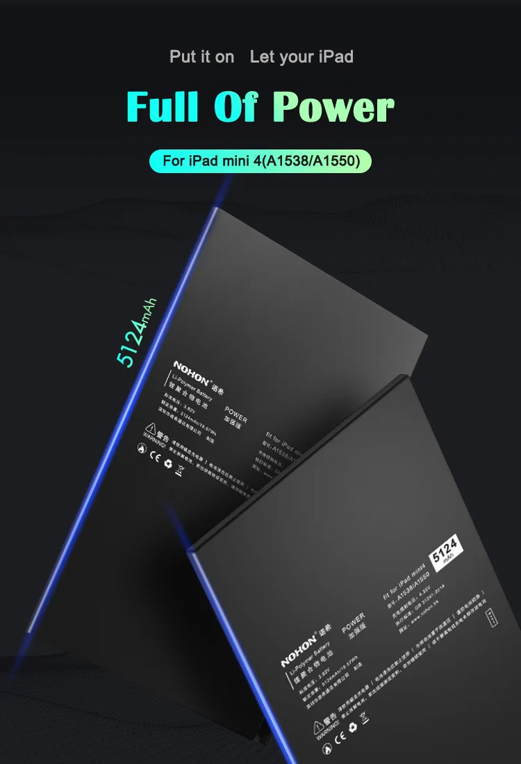 NOHON планшетный аккумулятор для Apple iPad Mini 4 Mini4 A1538 A1546 A1550 сменный аккумулятор 5124 мАч Высокая емкость батерия Бесплатные инструменты