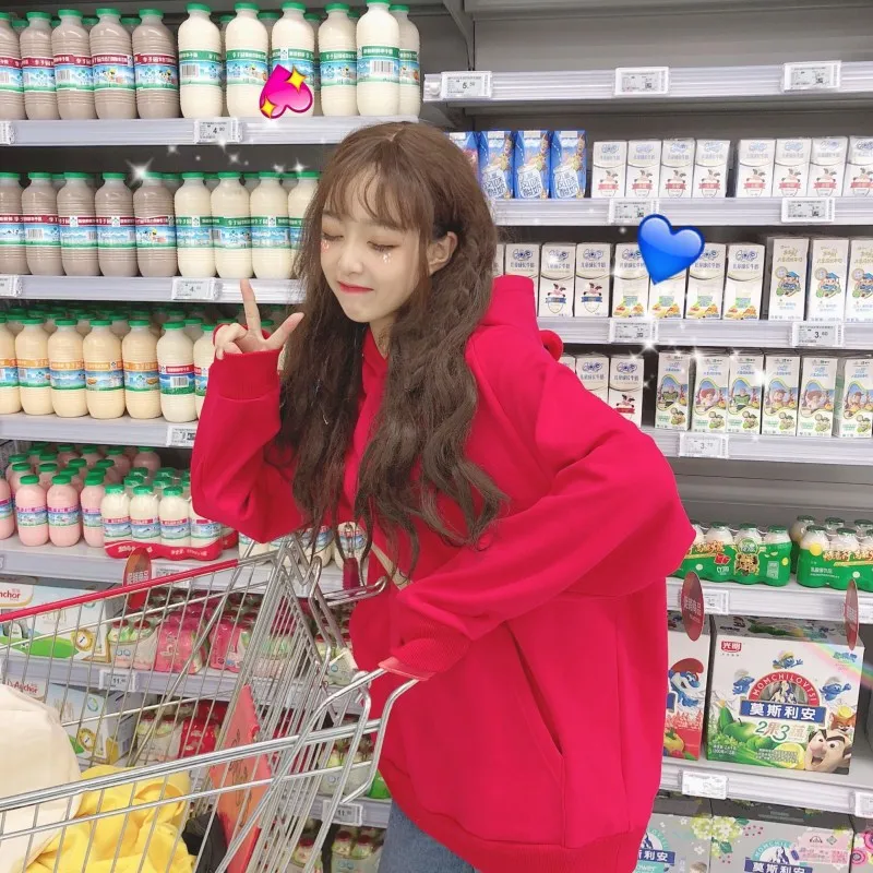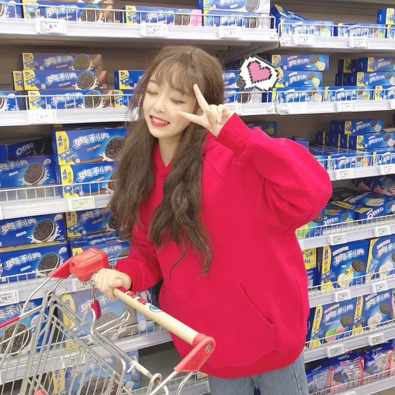 Осенне-зимняя женская однотонная свободная бархатная Женская толстовка в стиле Харадзюку BF