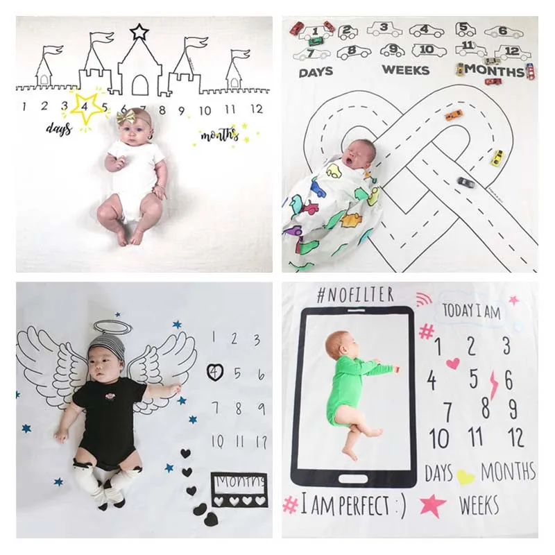 Новорожденный ребенок ежемесячный рост этап одеяла мультфильм узор ...