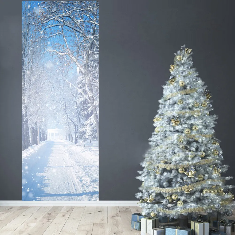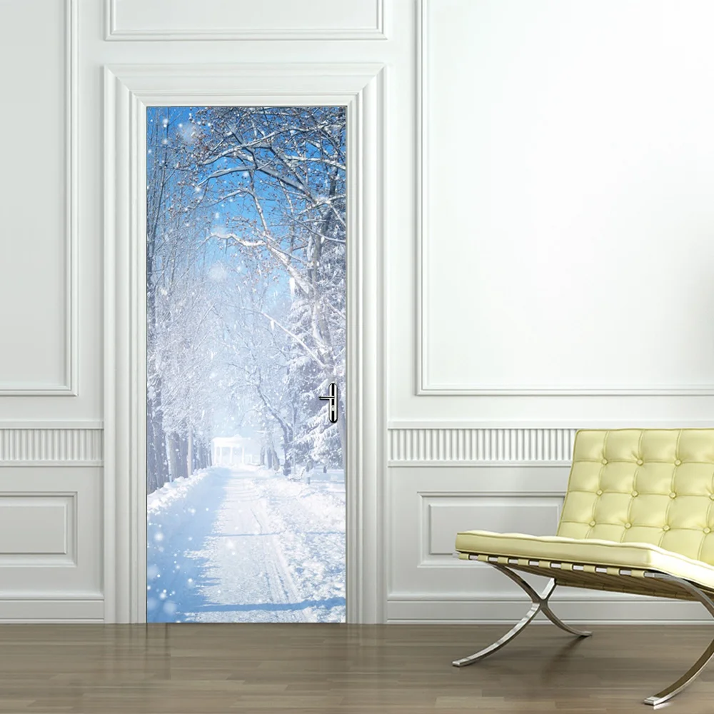 Домашние Креативные 3D наклейки на двери сделай сам, зимний снежный узор для двери детской комнаты, аксессуары для украшения дома, большая наклейка на стену