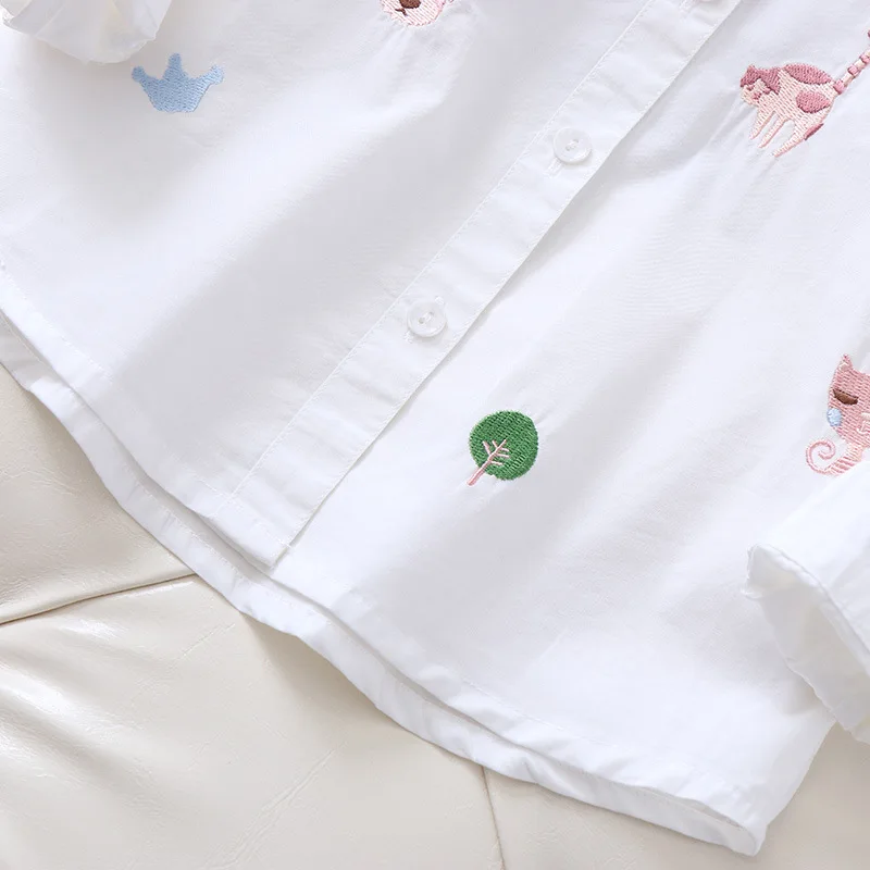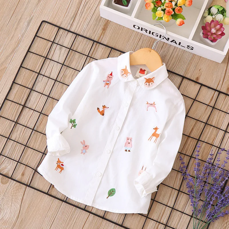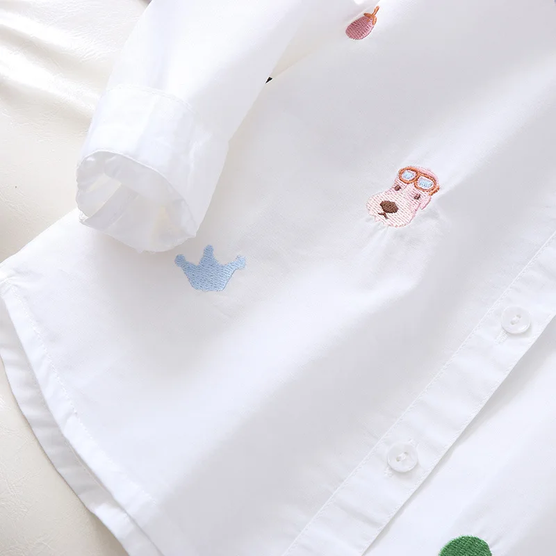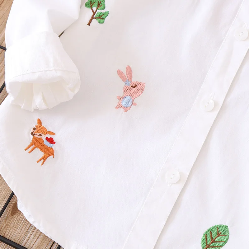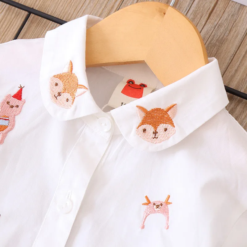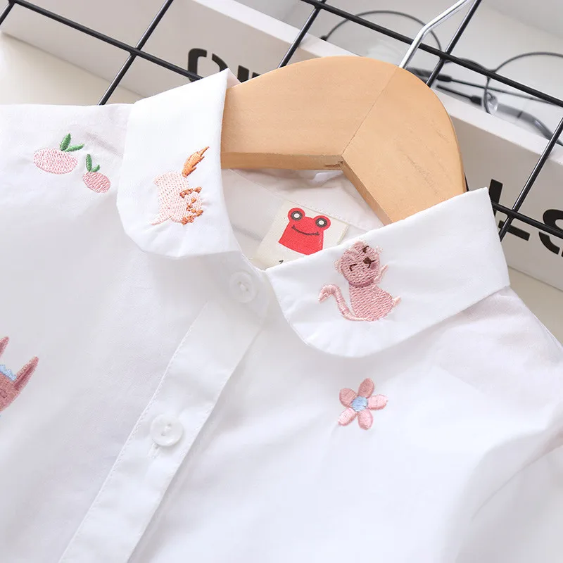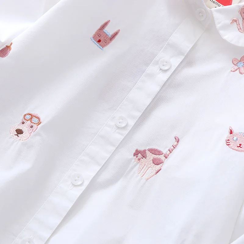 Белая и синяя блузка с вышивкой для девочек 8-10 лет, школьная форма, топы, весенне-осенняя милая детская одежда для девочек