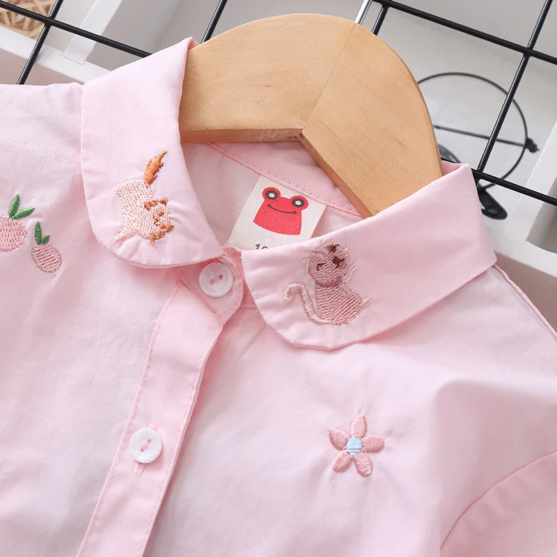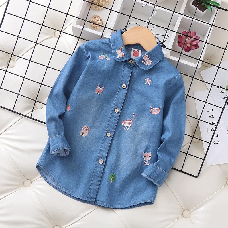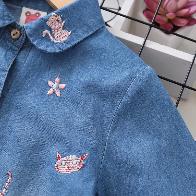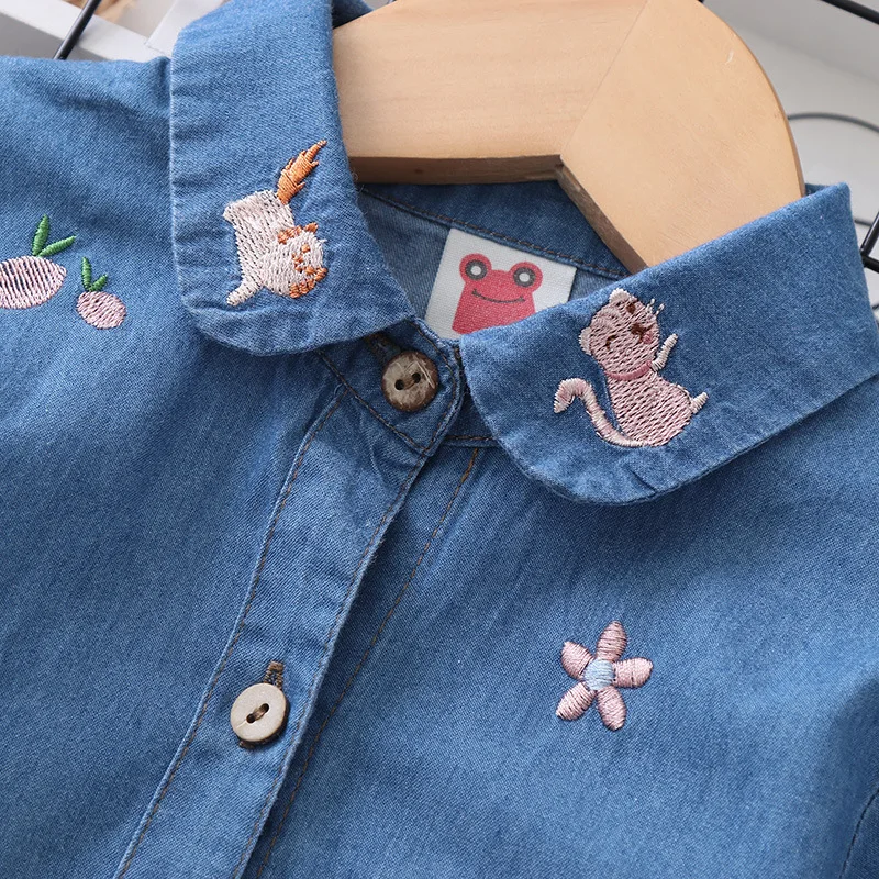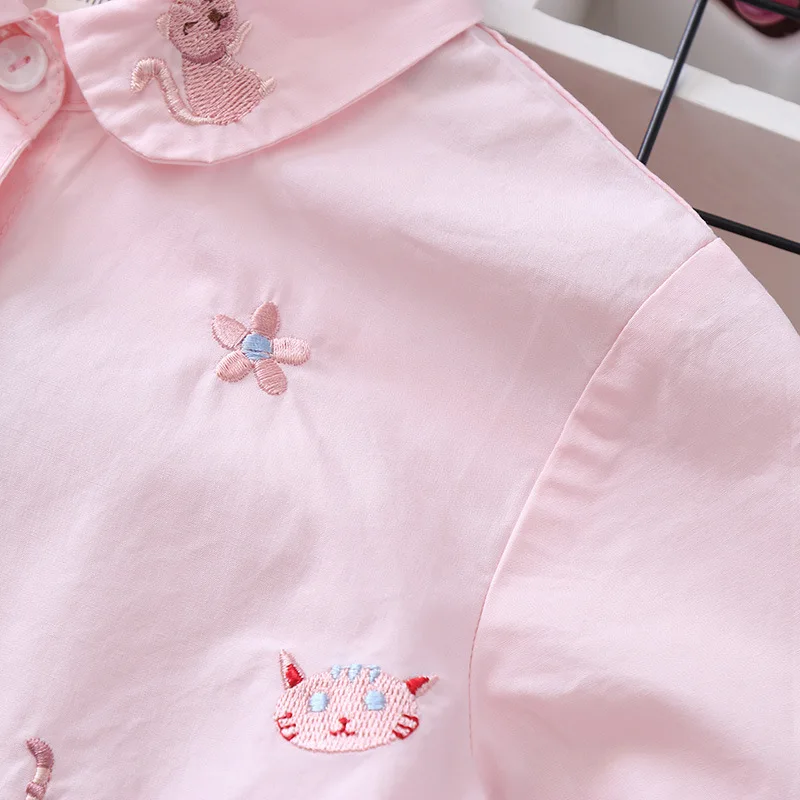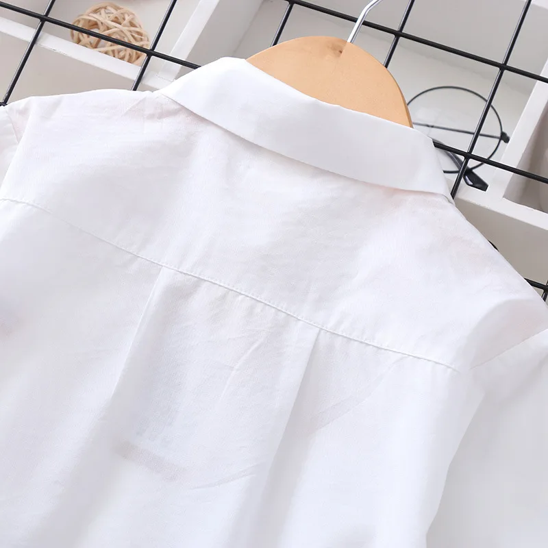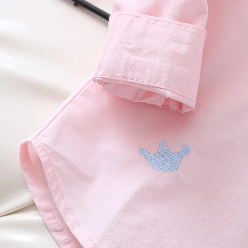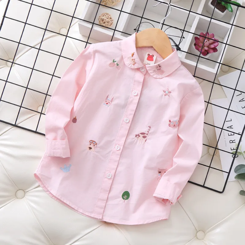 Белая и синяя блузка с вышивкой для девочек 8-10 лет, школьная форма, топы, весенне-осенняя милая детская одежда для девочек