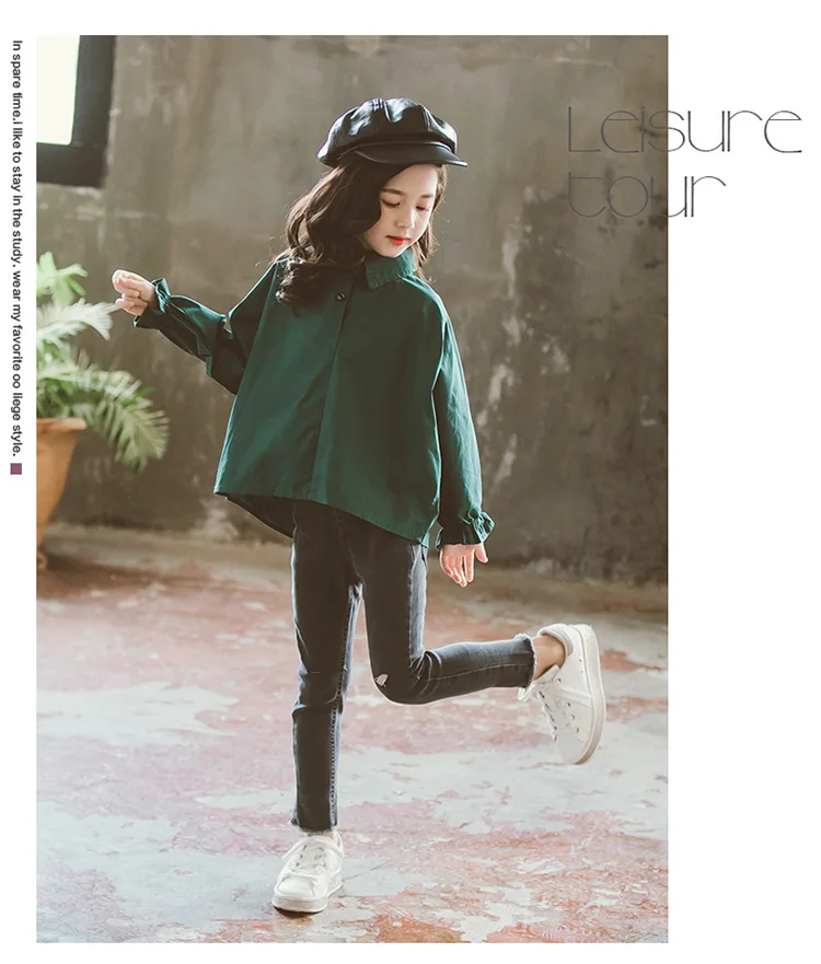 Асимметричная Свободная блузка для детей, рубашка для девочек от 10 до 12 лет, весенне-осенняя одежда для девочек-подростков