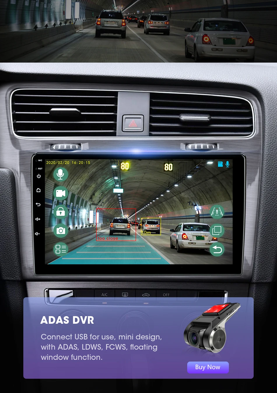 Поддерживает подключение к видеорегистраторУ ADAS. ADAS DVR имеет несколько встроенных ассистивных технологий вождения, вставляя высококачественную карту памяти TF для записи каждого момента вашего вождения.