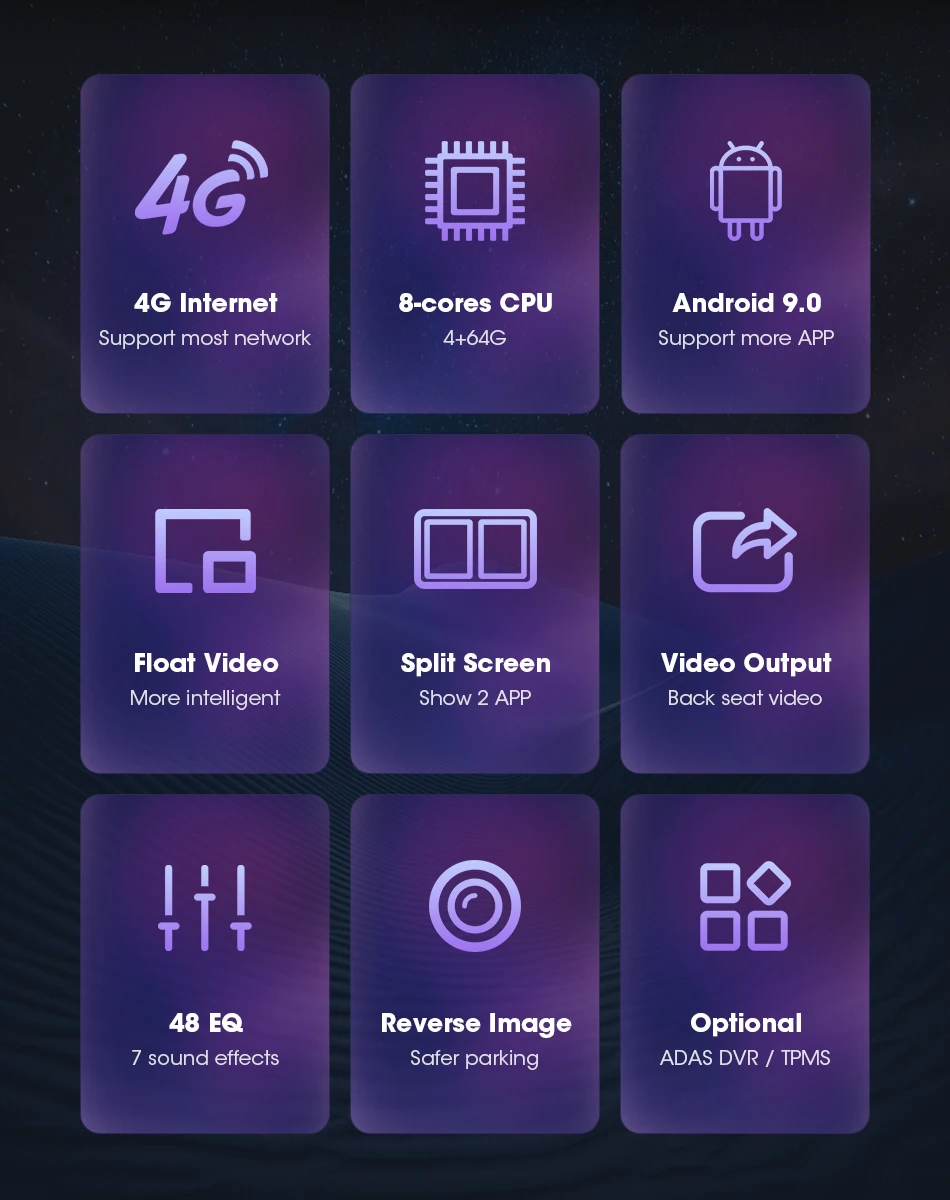 По сравнению с оригинальным автомобилем, экран больше, цвета более яркие, и он поддерживает просмотр под разными углами. Новая рама сделана в соответствии с оригинальным автомобилем, который идеально сочетается с вашим автомобилем и прост в установке.