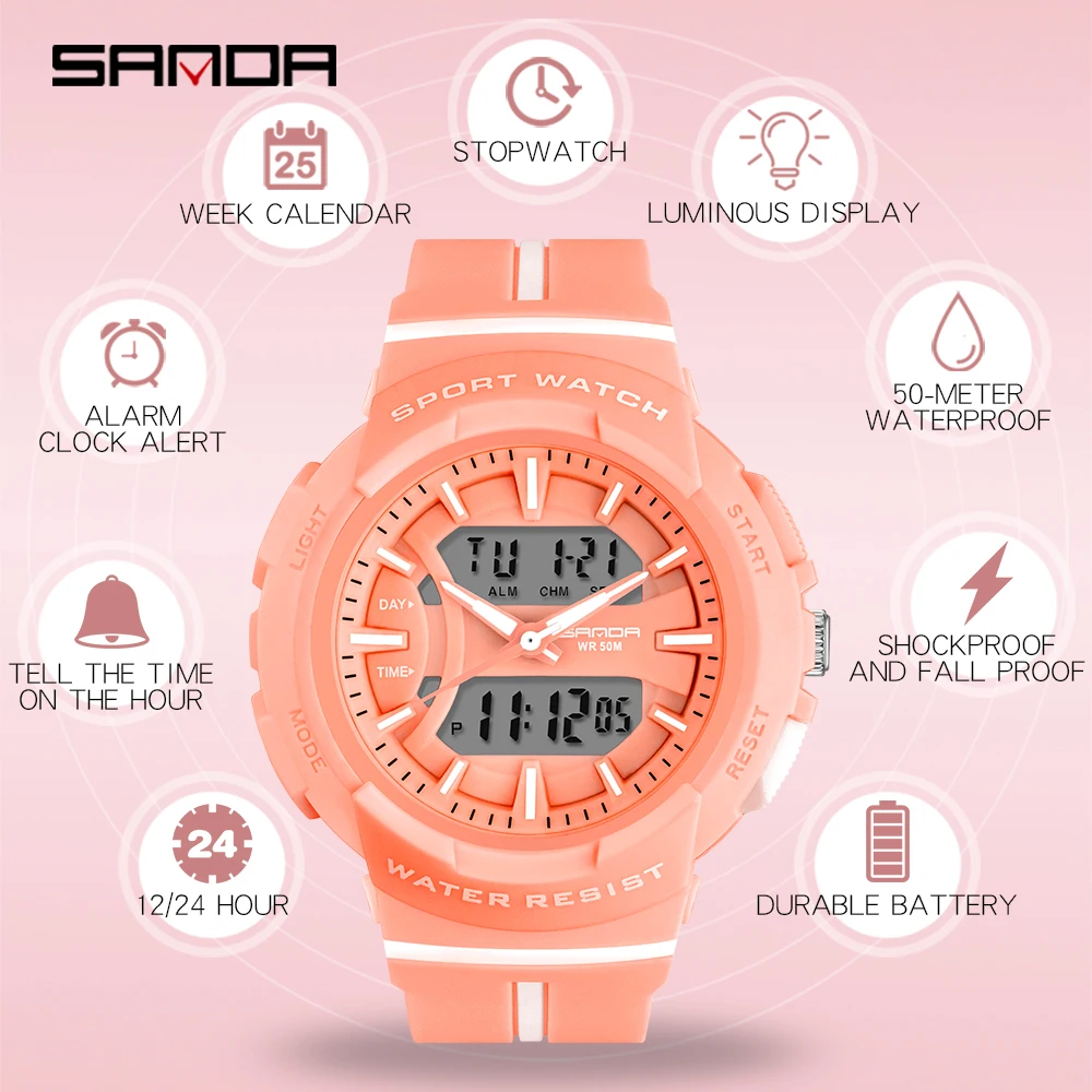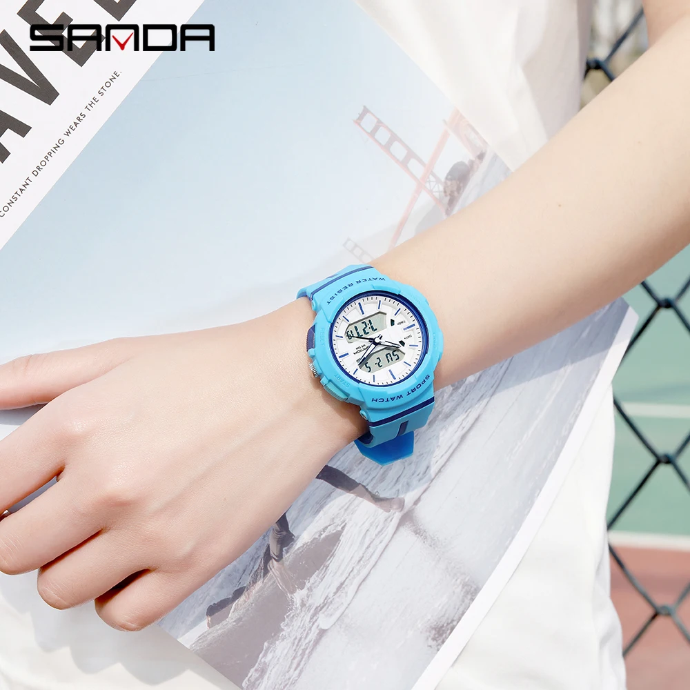 SANDA модные женские часы, электронные спортивные часы, женские светодиодные цифровые наручные часы, женские водонепроницаемые часы, мужские часы
