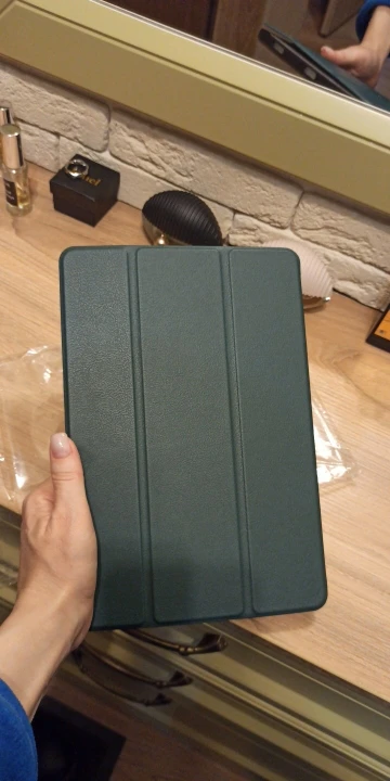 Чехол очень крутой. Такой массивный и прочный. Думал придёт бумажный, но он очень плотный. Основной каркас из гибкого твёрдого пластика, крышка из прессованного пластика тоже, с магнитными креплениями. Все отверстия подошли идеально. Планшет не вываливается. Магнитный замок работает. Думаю, не обтреплется долгое время. Продавец положил стилус в подарок. Спасибо!