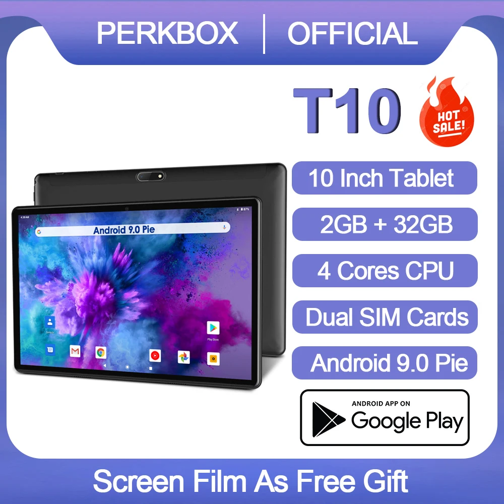 Планшет Perkbox T10 Google Android 9,0 Pie, 10 дюймов, 32 Гб ПЗУ, Wi-Fi, Bluetooth, 3G, телефонные звонки, GPS, Bluetooth
