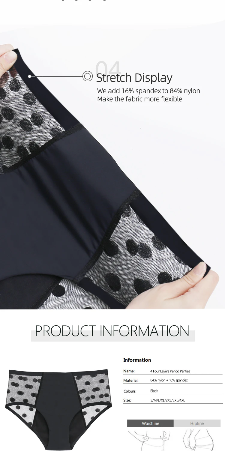 Нижнее белье, трусики для менструаций на период, 4 слоя, непротекающие, сексуальные сетчатые женские брюки, впитывающие недержание мочи, Прямая поставка