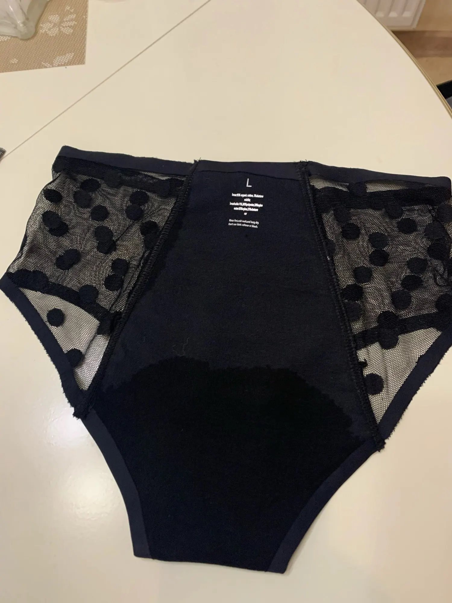 Очень быстрая доставка 8 дней доставка в Москву . Очень приятные бесшовные трусики, размер L соответствует 46 российскому . Провела тест , пролила 60 мл воды , быстро впиталась , но внешне бельё стало мокрым и влажным с внутренней стороны . Нужно использовать с прокладками в критические дни. Защита от протекания будет хорошей но с использованием прокладки
