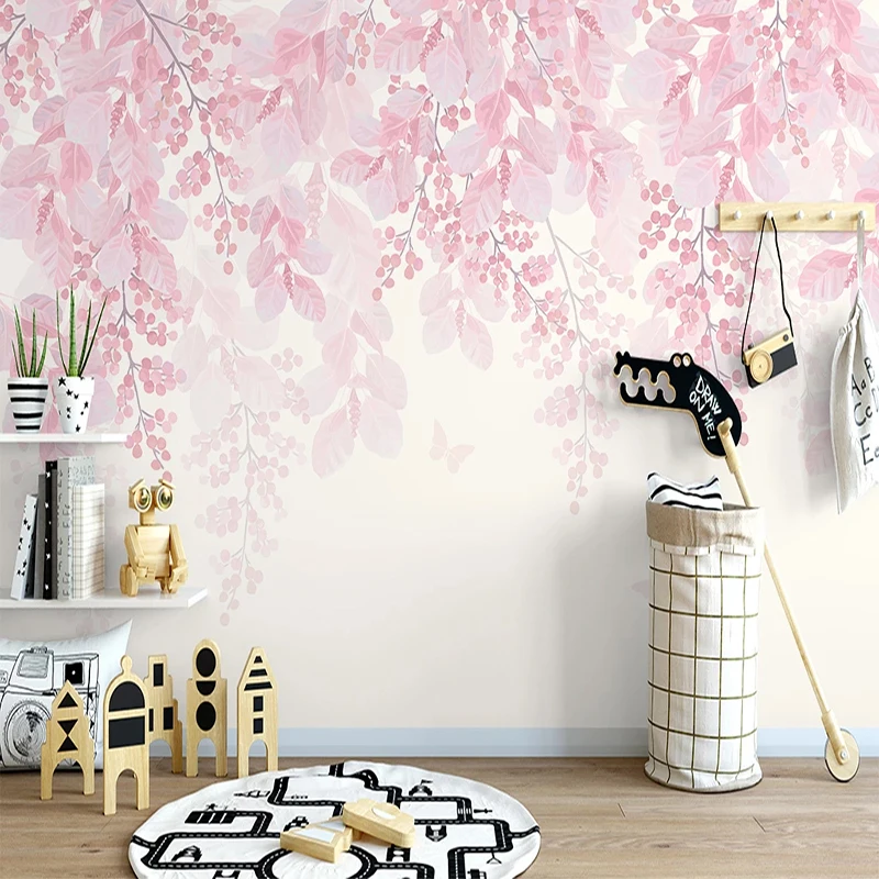 Настенная бумага на заказ, Современная ручная роспись в скандинавском стиле, Вишневое дерево, розовые цветы, настенная роспись, романтичный Декор для дома, 3D обои