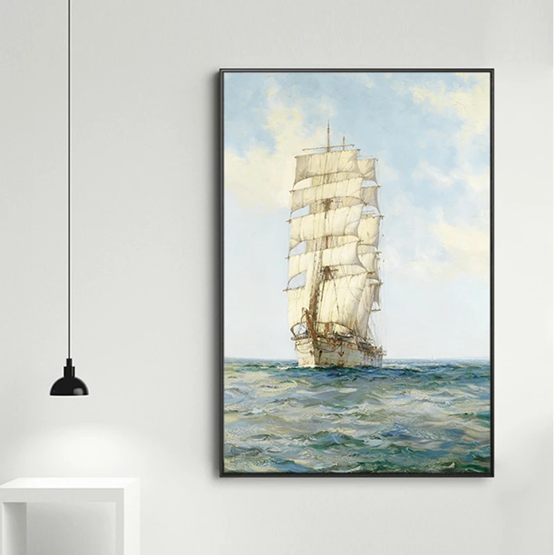 Современный Морской пейзаж, поп-арт, печать на холсте, корабль, парусник в волнах, настенные картины, лодки, Куадрос, картины для украшения гостиной