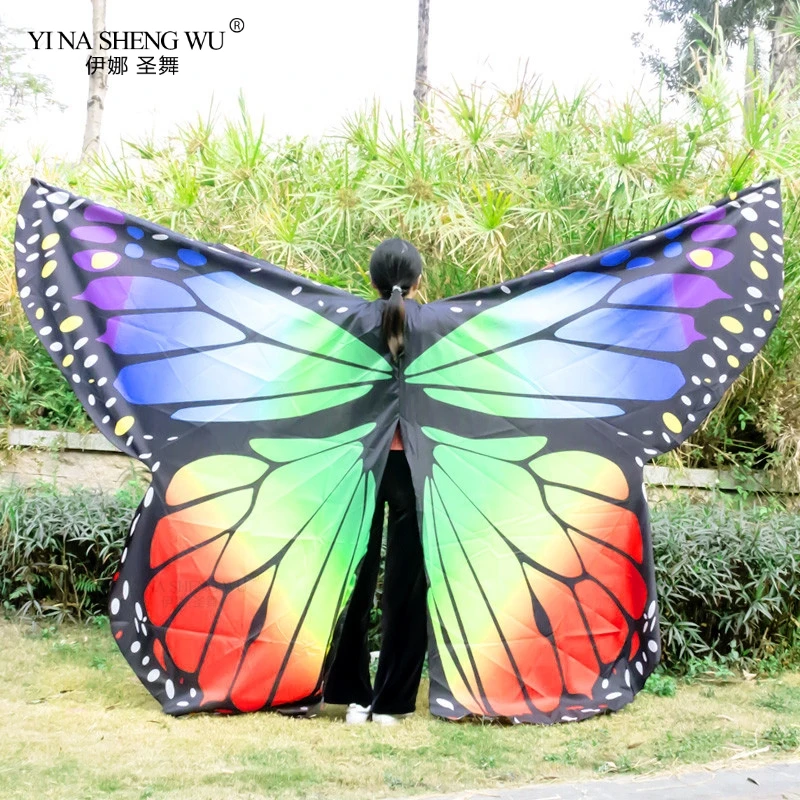 Женский танцевальный костюм с крыльями бабочки для девочек, костюм для танца живота, аксессуар для выступлений, Одежда для танцев для взрослых детей, 2 размера, без палочек