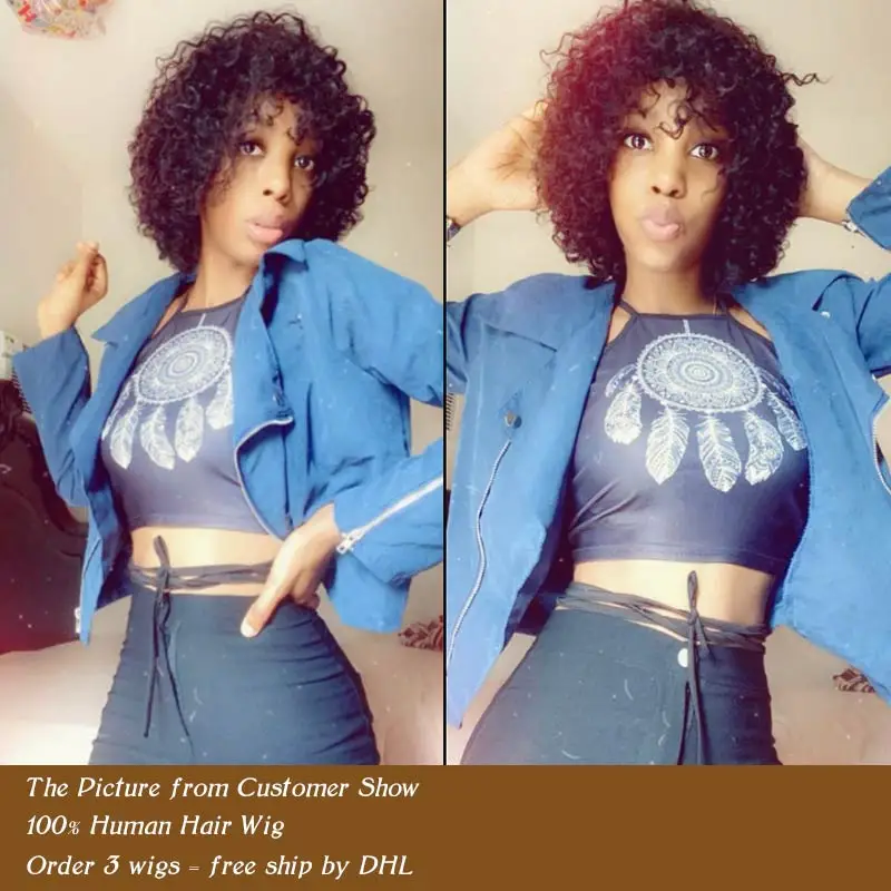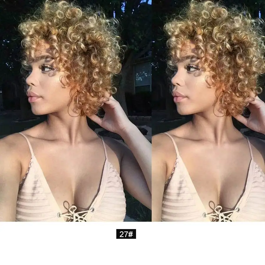 Короткие вьющиеся человеческие волосы Rebecca, парики для чернокожих женщин, перуанские волосы Remy с челкой, волнистые кудрявые парики для косплея красного и черного цвета