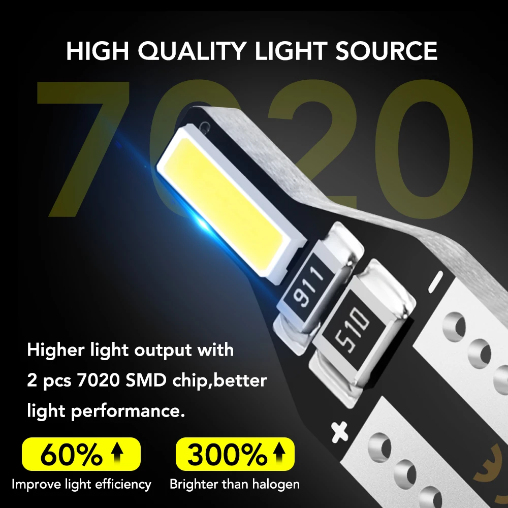 Артикул: T10.W5W.158.168.147.152.158.159.161.168.184.192.193.901.904.912.916.917.918.920.921.922.923.926.927 и т. д. Технические характеристики: T10 w5w светодиодный светильник • Сила тока: 0.03A Тип СВЕТОДИОДА: 7020 SMD, 2 светодиодных чипа. Светильник Цвет: 6000K белый Рабочая Напряжение: DC12V-14V Люмен: 100-200лм/Вт Срок службы: более 50000 часов Рабочая среда: -40 °C ~ 105 °C Широкое применение: Автомобильный купольный светильник, светильник карты, перчаточный светильник, светильник для чтения, парковочный светильник, светильник багажника, дверной светильник, светильник номерного знака, парковочный светильник, светильник шириной, светильник для зазора, боковой светильник и т. Д. Посылка включает в себя: 10 шт. T10 светодиодный лампы