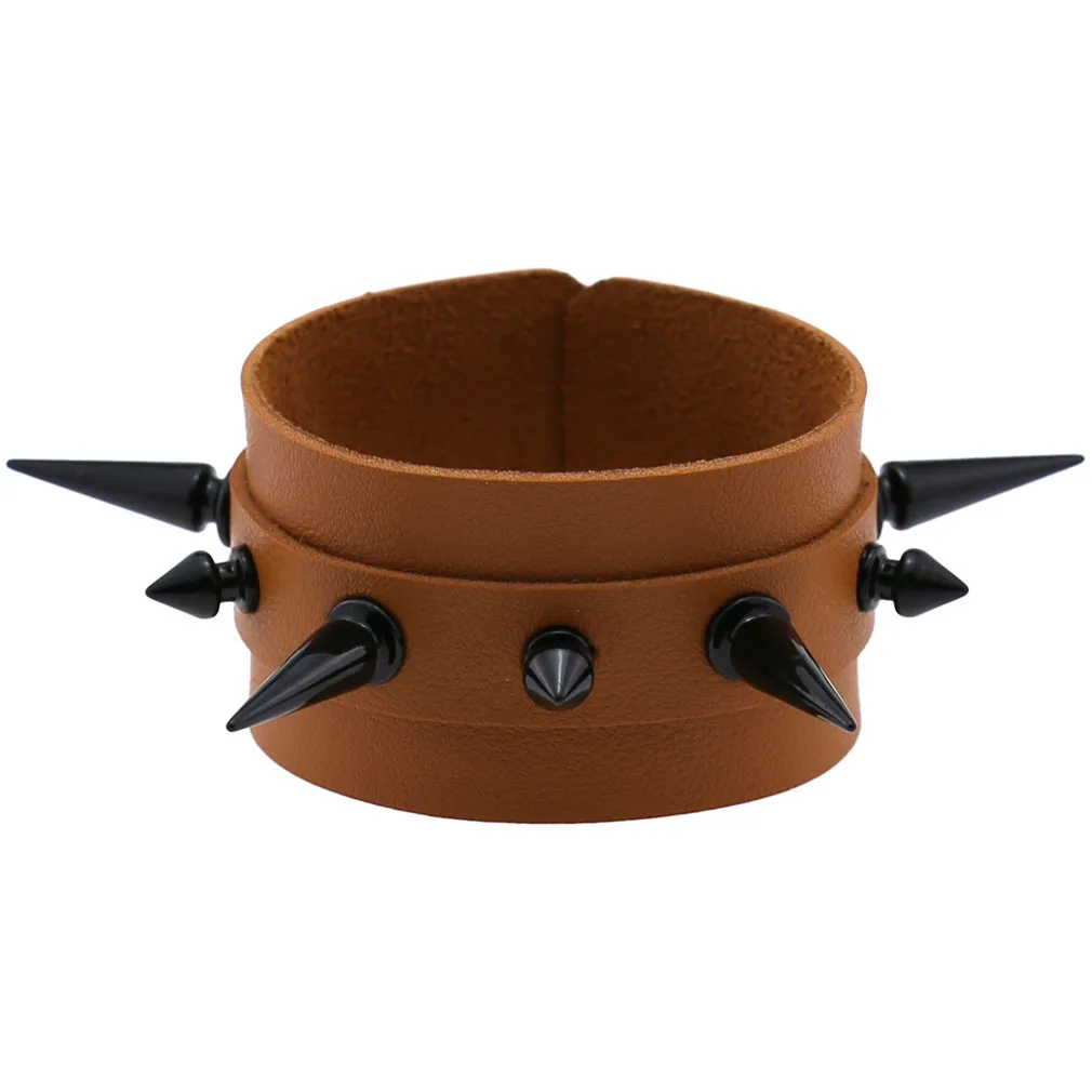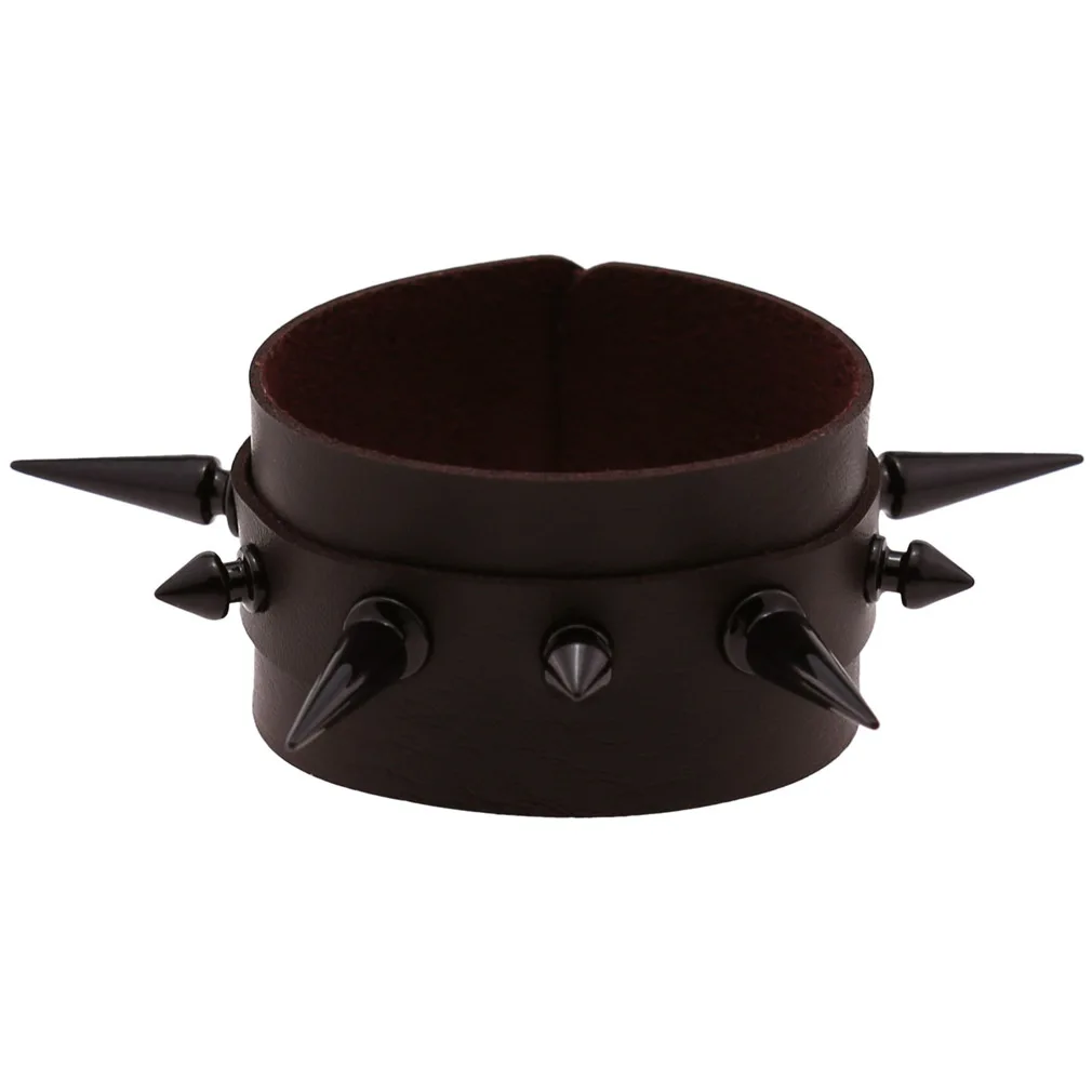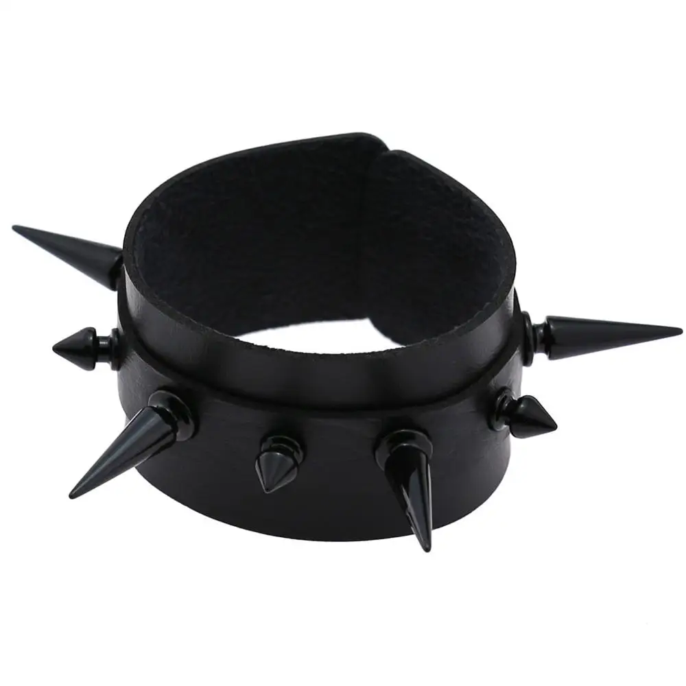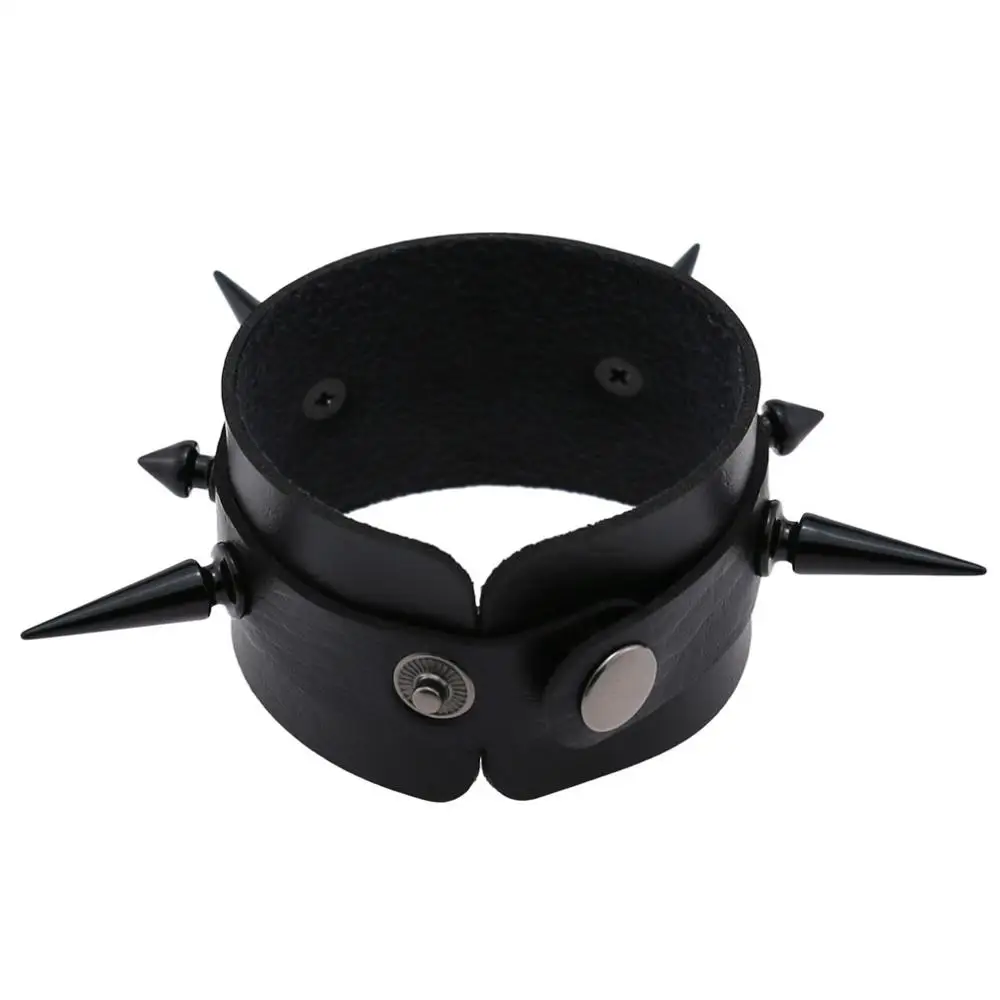 Панк готический рок черный Cuspidal Шипы Заклепки конусные Шпильки Широкий кожаный браслет на запястье браслеты модные унисекс эмо ювелирные изделия