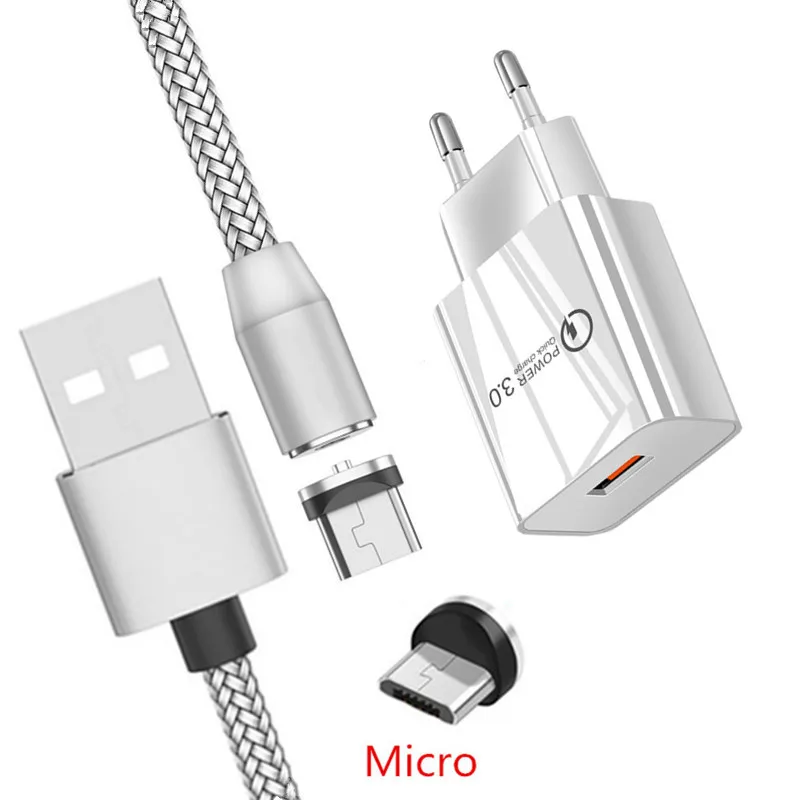 Быстрое зарядное USB-устройство QC 3,0, светодиодный магнитный Micr...