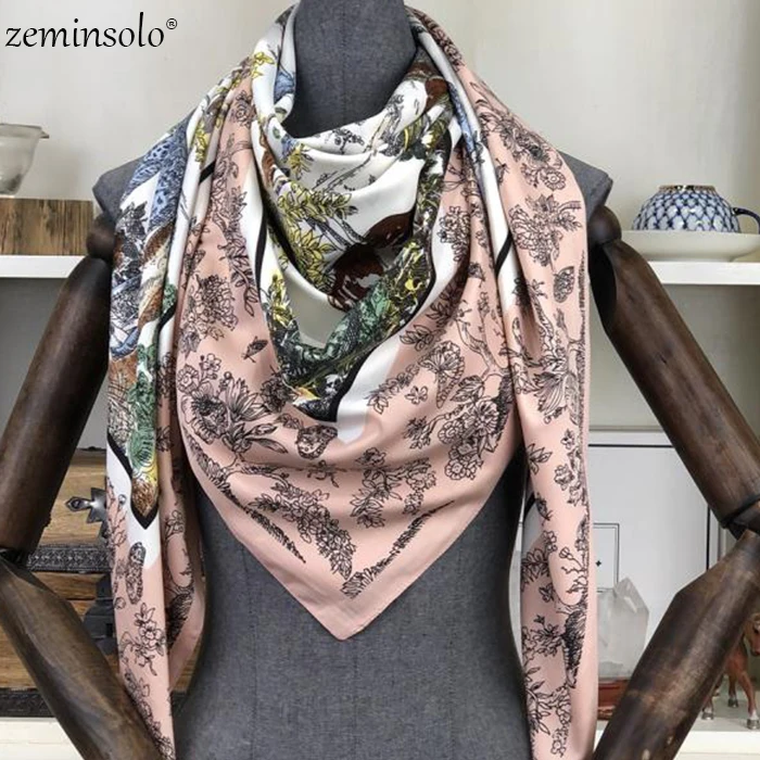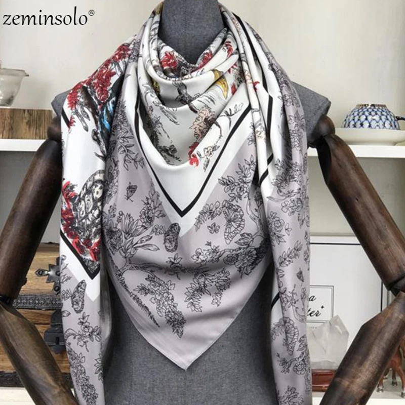 100% саржевый шелковый шарф, женские Большие шали с цветочным принтом, палантины, квадратные шарфы, бандана, хиджаб, платок, женские шали, 130*130 см