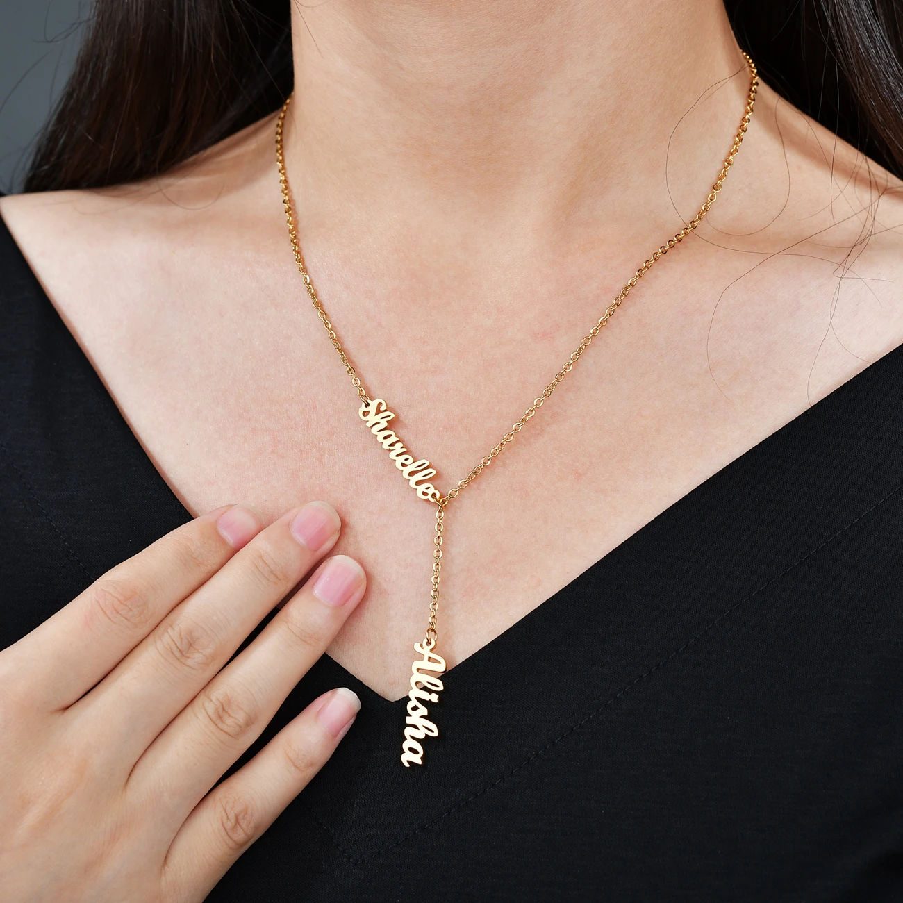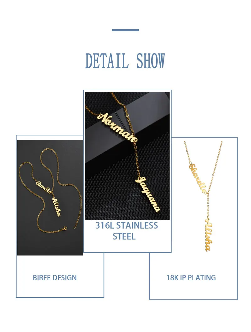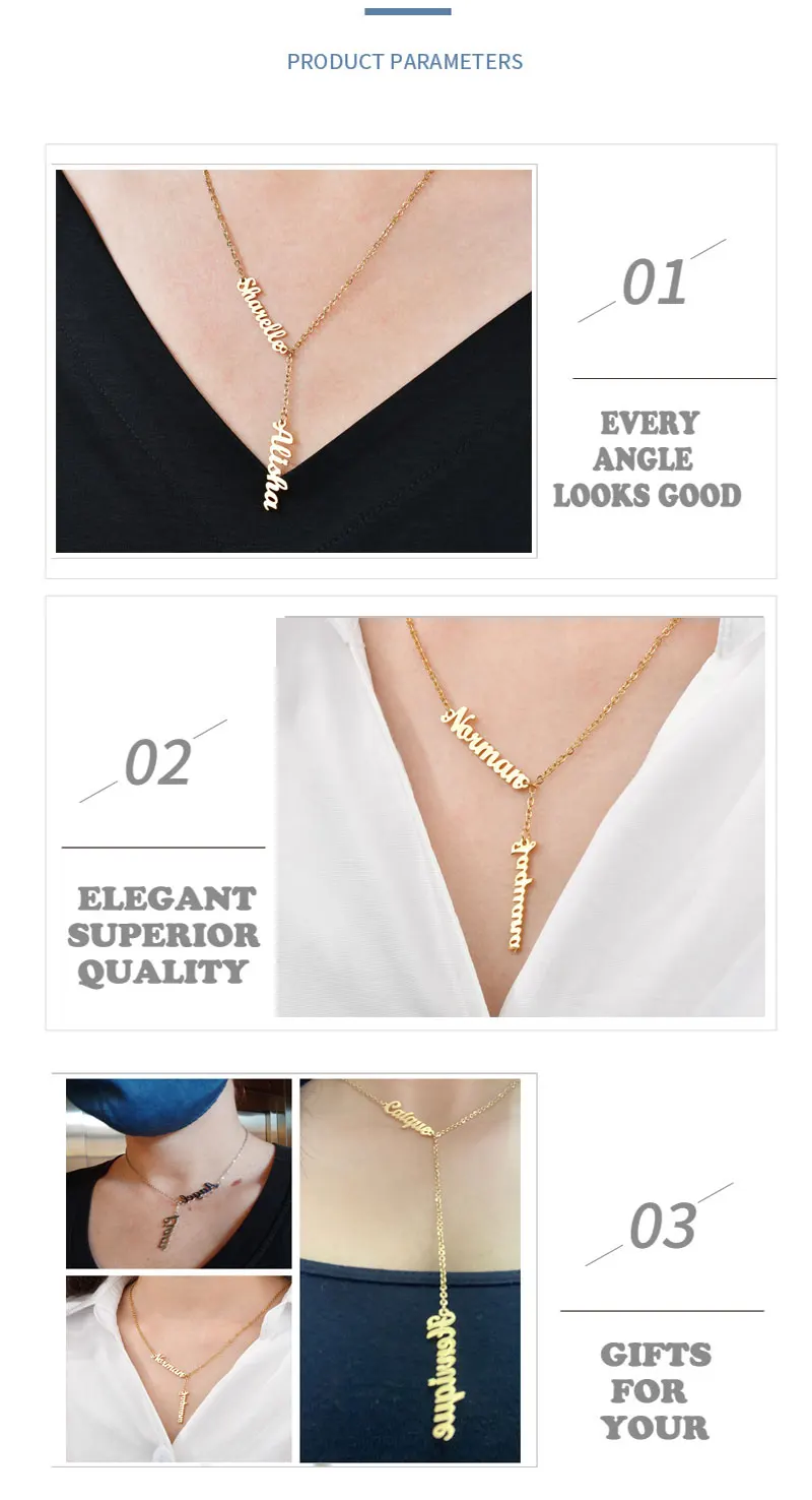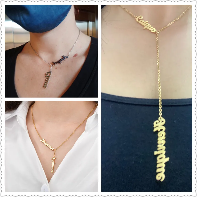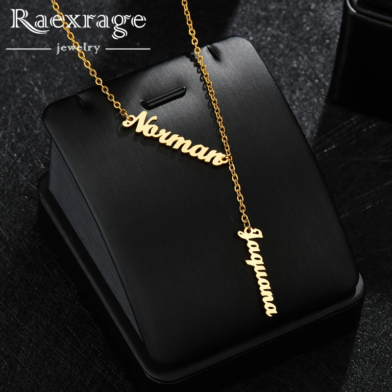 Ожерелье Raexrage на заказ с двумя и тремя именами, вертикальное ожерелье из нержавеющей стали, персонализированное ожерелье с именной табличкой, очаровательные украшения для всей семьи