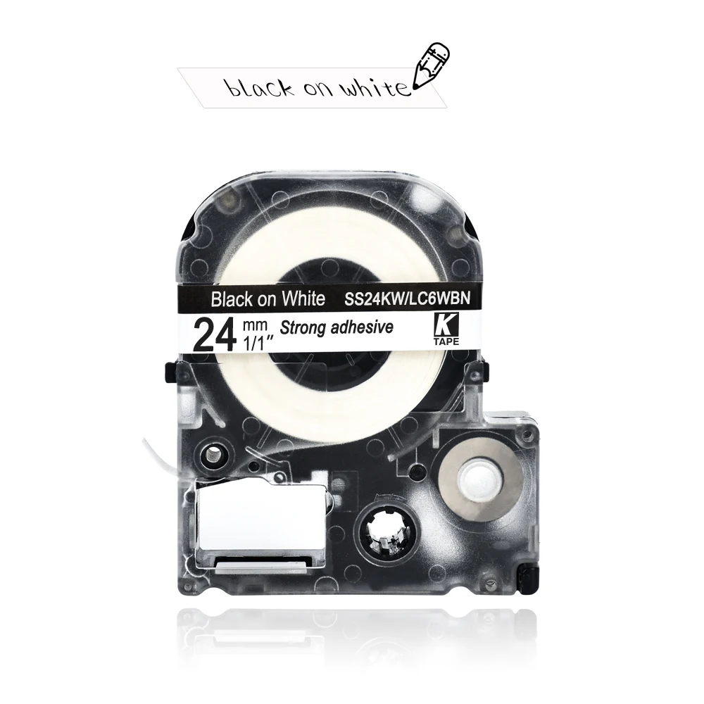 Лента для этикеток Epson 24 мм, черная на белом, SS24KW LC6WBN, лен...