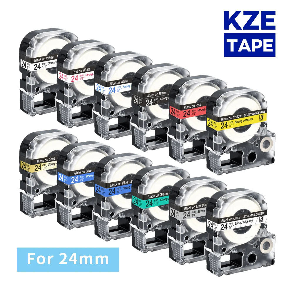 -Бренд: Kze Tape-Товар: ленты для этикеток EPSON / KingJim-Номер модели: SS24KW / SS24R / SS24B / SD24K / SC24RW / SC24YW / SM24Z / SD24B / SC24BW / SC24GW / SM24X / ST24KW-Цвет: черный на белом/красный на белом/синий на белом/белый на черном/черный на красном/черный на желтом/черный на золотом/белый на голубом/черный на зеленом/черный на серебристом/черный на прозрачном-Размер: 24 мм x 8 м-Материал: ПЭТ, АБС-пластик-Совместимость: для принтера EPSON / KingJim label