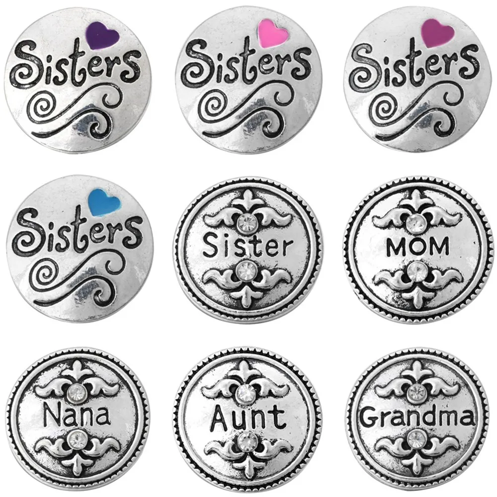 6 шт.лот, новые Семейные ювелирные украшения, Nana, бабушка, мама, сестра, тетка, 18 мм, кнопки, сменные кнопки, браслет, ожерелье