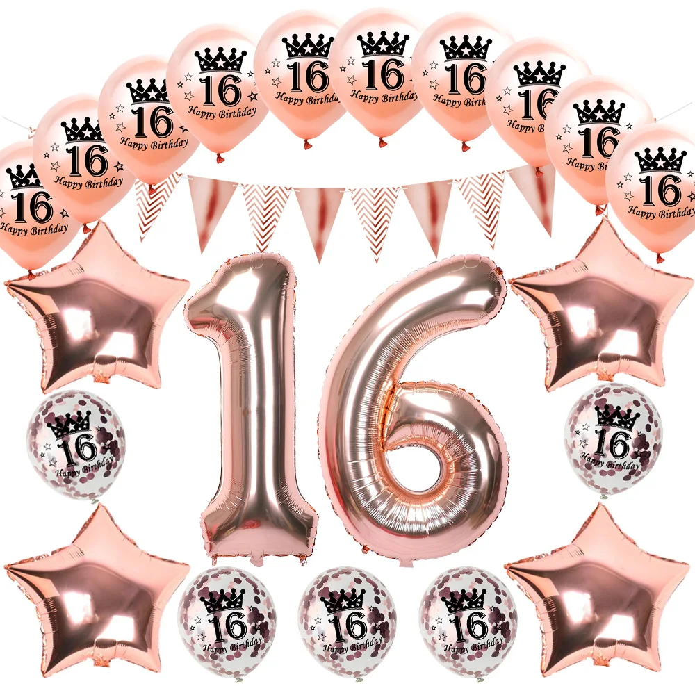 Amawill сладкий 16 украшения для Вечерние Розовые и золотые воздушные шары 16 лет с днем рождения сувениры шестнадцать день рождения вечевечерние Шары поставки
