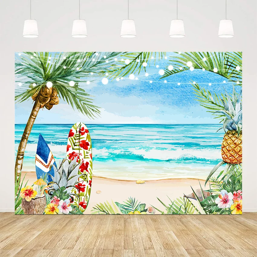 Летние пляжные фоновые кокосовое дерево фон для фотографирования картина маслом для новорожденных фотосъемка доски для серфинга для видеосъемки