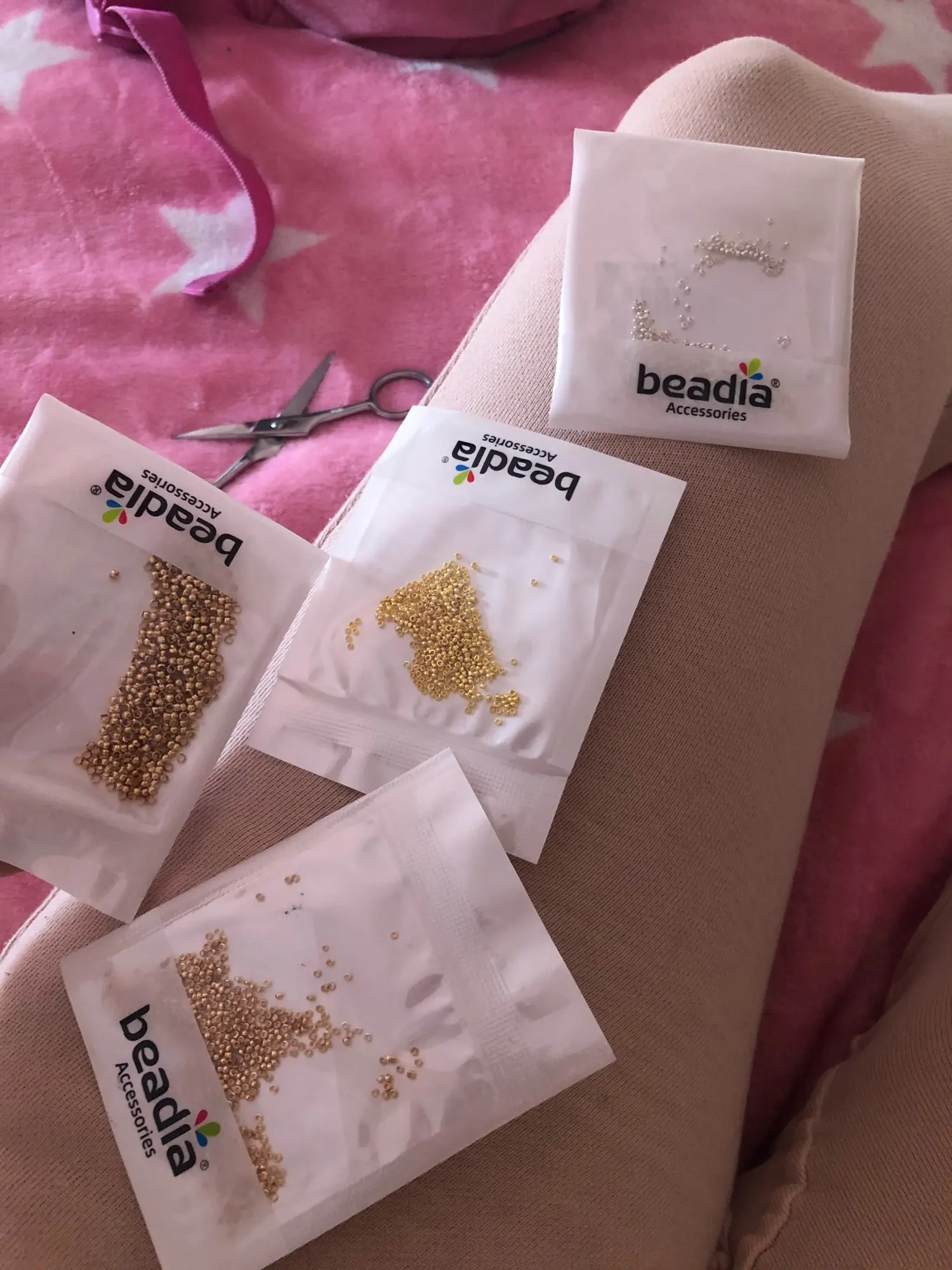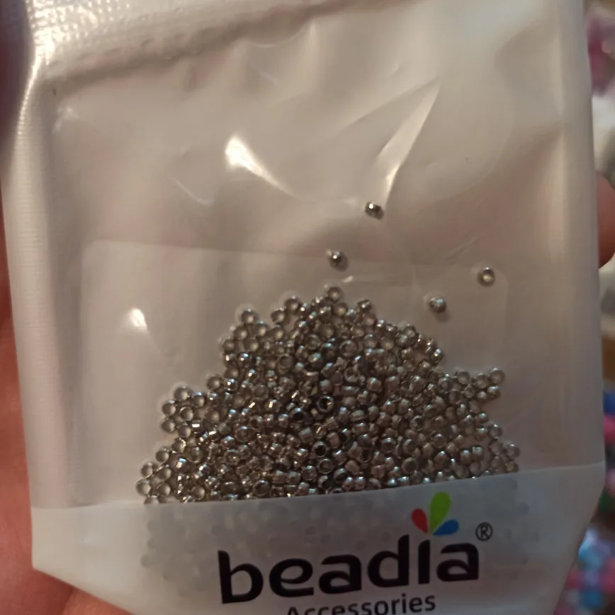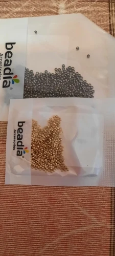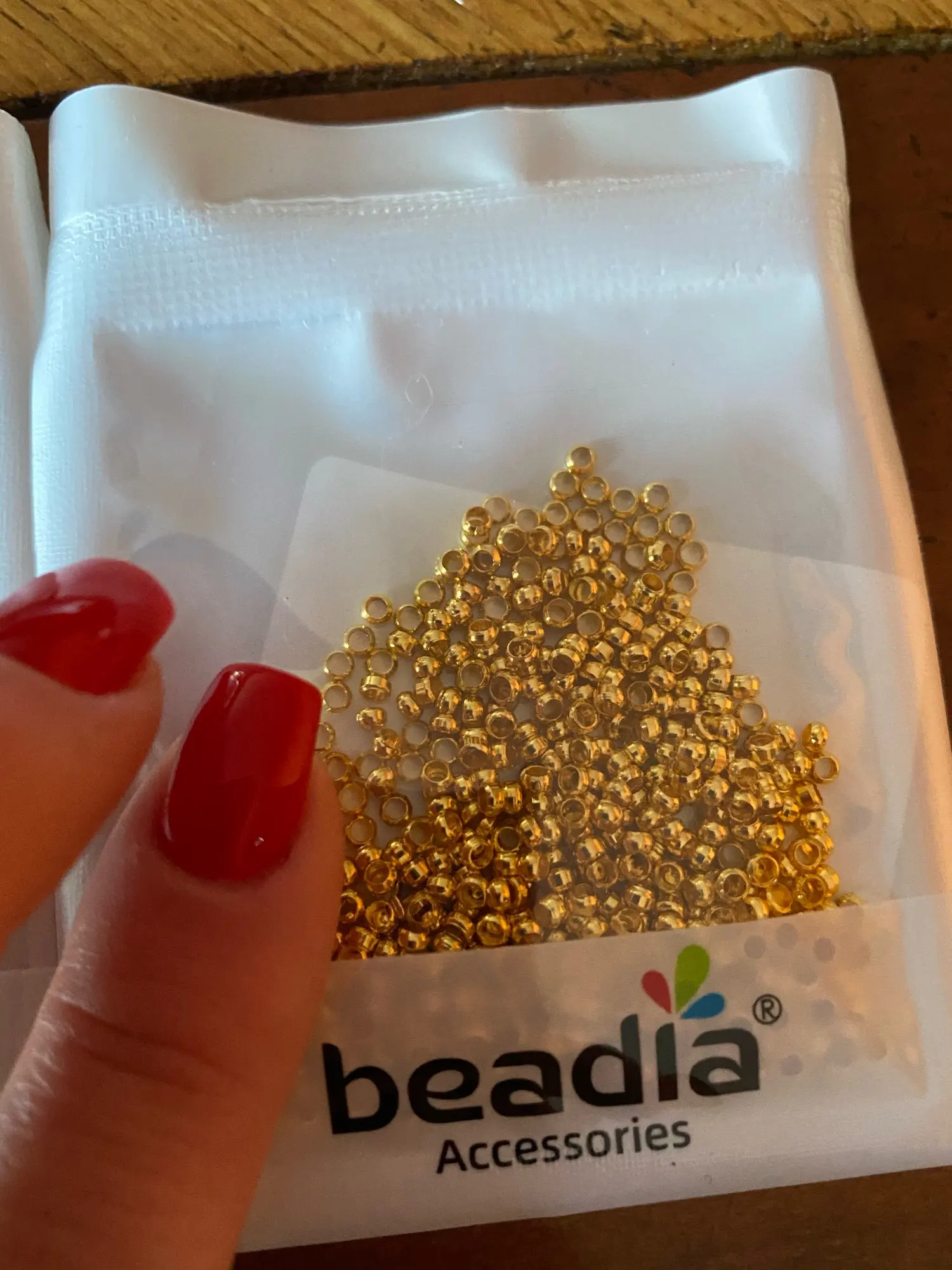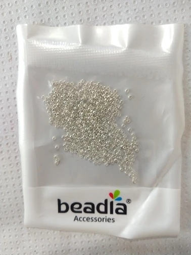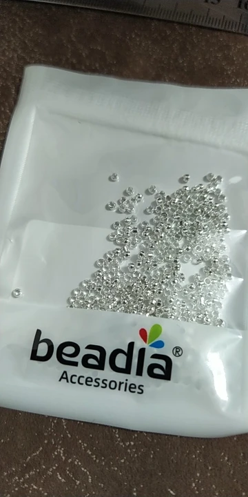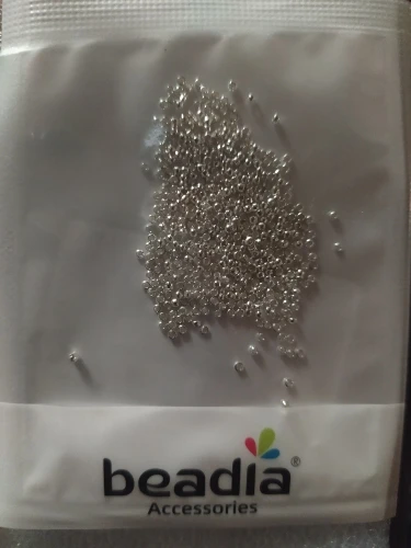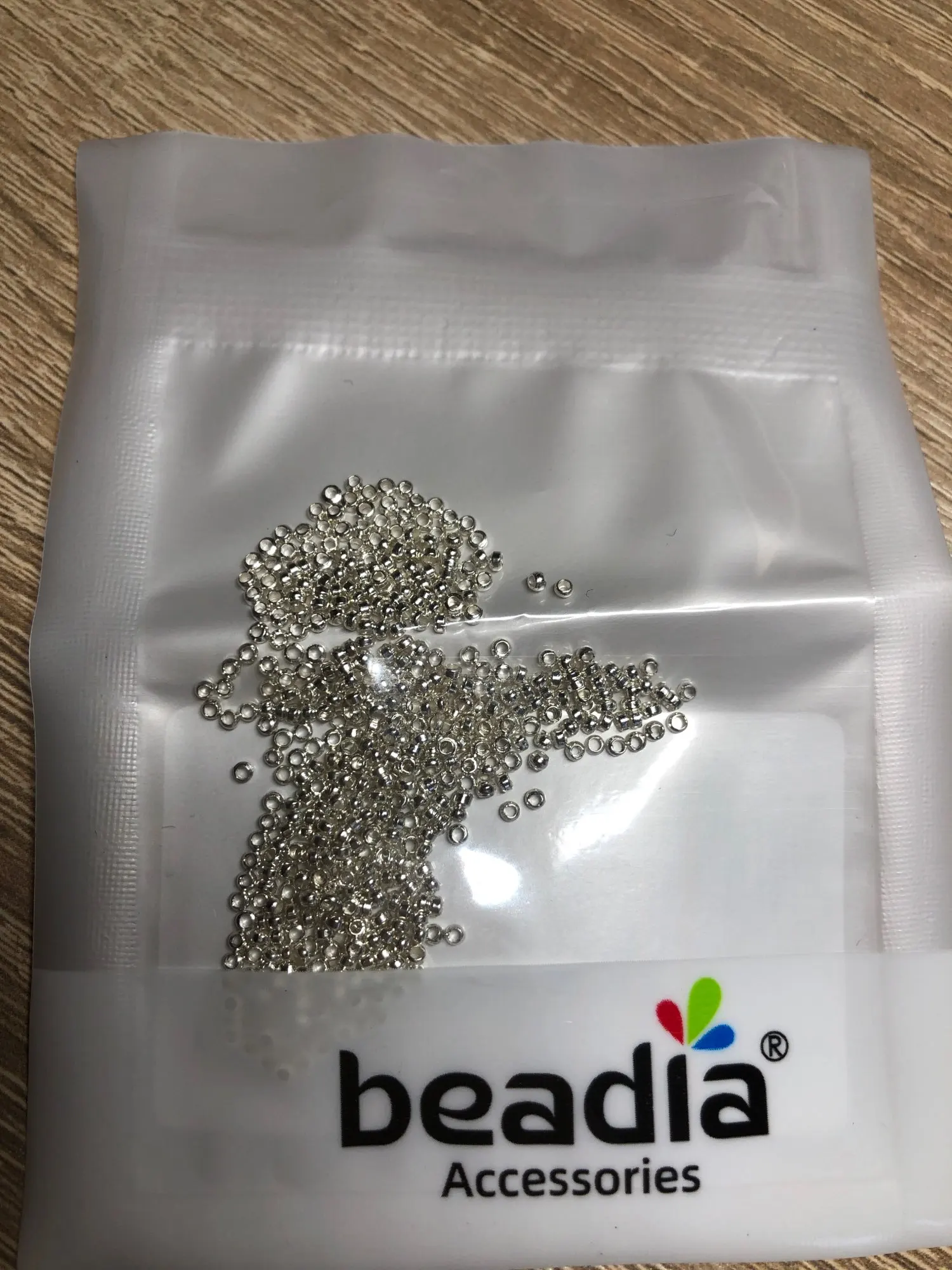 обжимные бусины хорошего качества, количество не проверяла, блестящие , выглядят как серебряные бусины