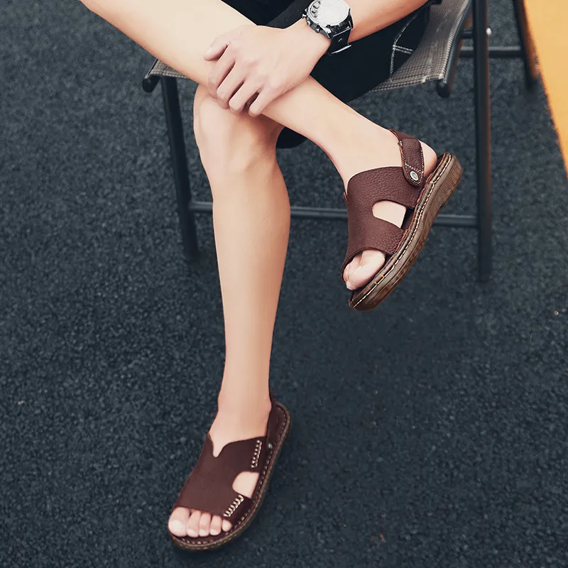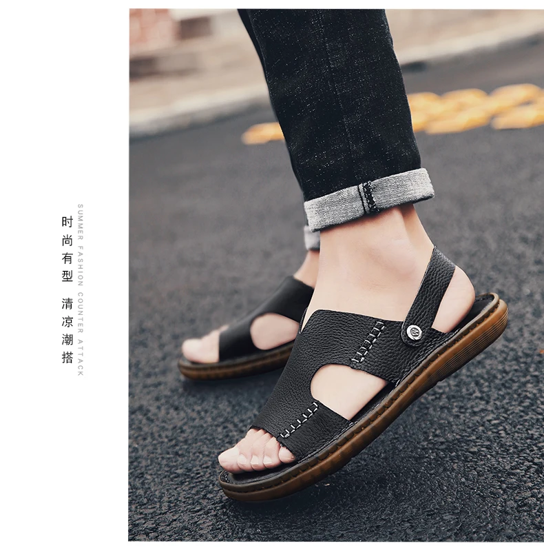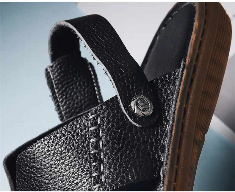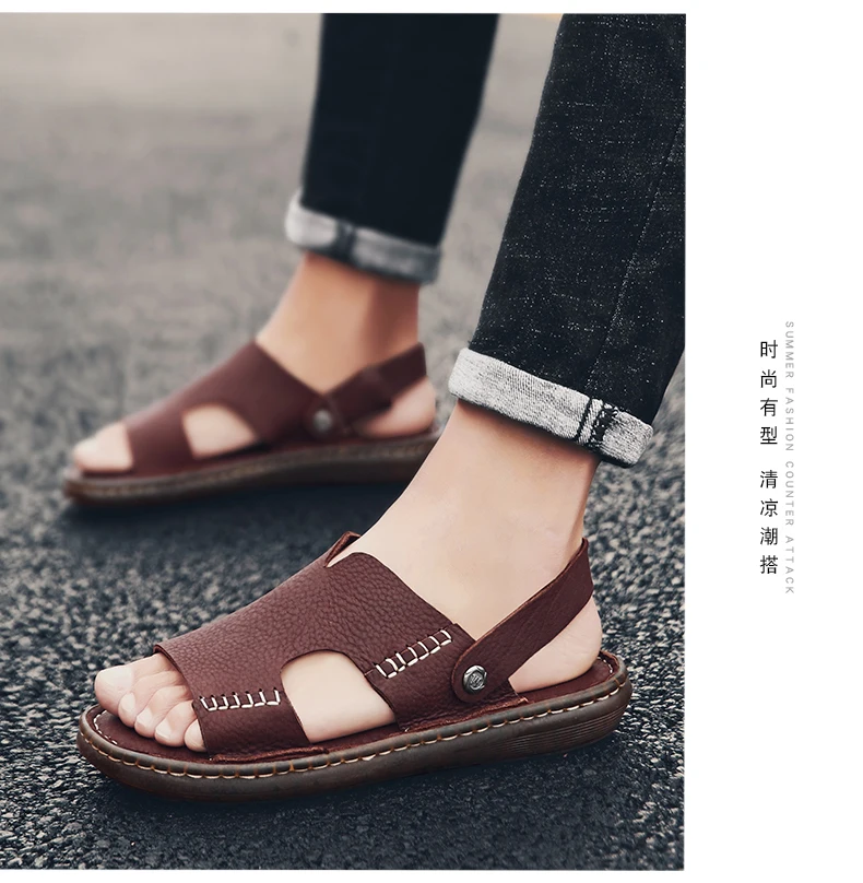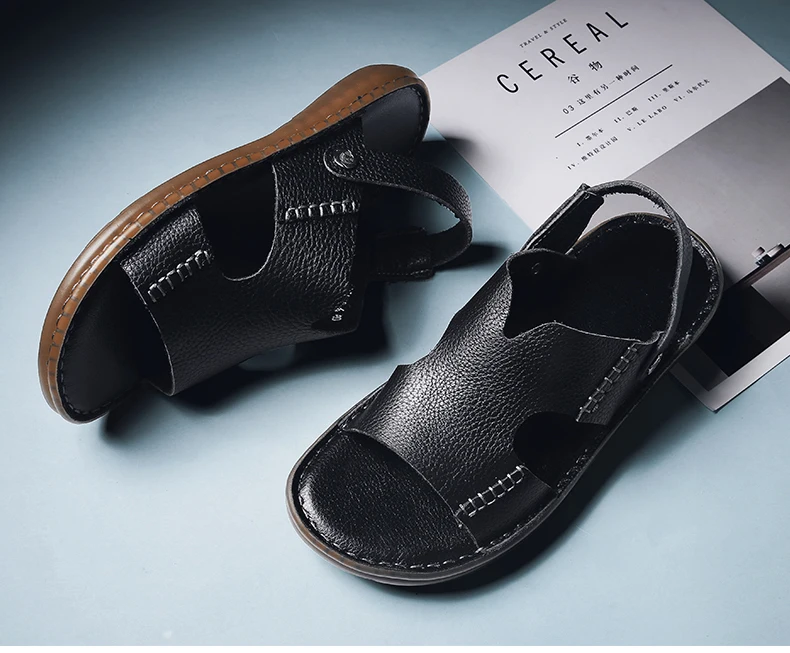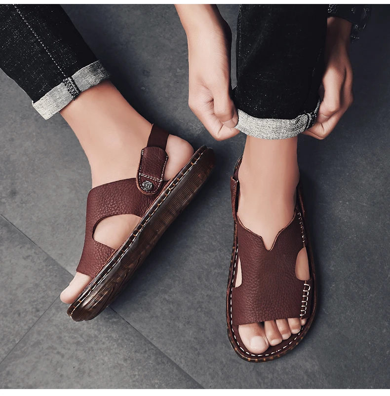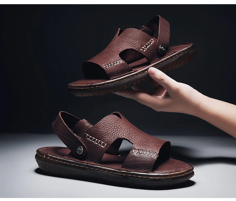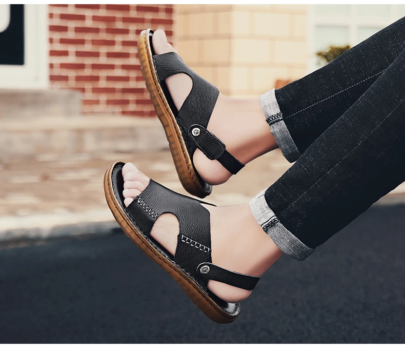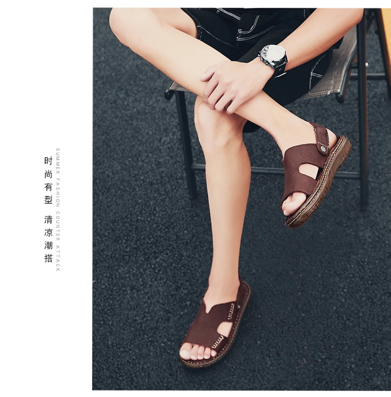 Мужская обувь из натуральной кожи; Большие размеры Новые летние шлепанцы; Мужские уличные сандалии модные пляжныедомашние тапочки; Повседневная мужская обувь; Прогулочные сандалии