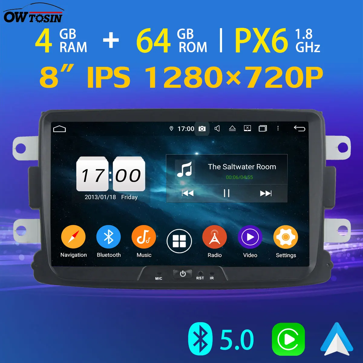 Автомобильный мультимедийный плеер, IPS 1280*720P PX6, Android 10,0, для Renault Captur, Dacia, Duster, beargy, Sandero, GPS, BT 5,0, радио