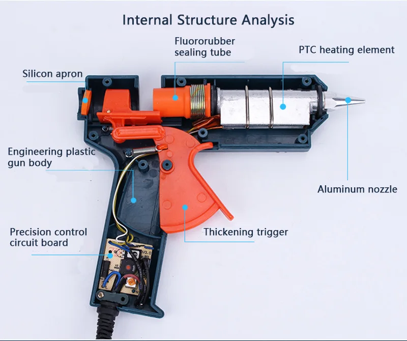 Термоклеевой пистолет 150 Вт, длинный медный пистолет с регулируемой температурой 11 мм, профессиональный промышленный домашний клеевой пистолет