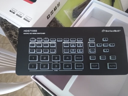 "HDS7105S + Free Gift HDMI". HDMI в посылку не добавили, но это проблема. Товар рекомендую! Но есть замечания по поводу 1080p (FULL HD): у "Atem Mini" качество изображения лучше, чем HDS7105. Кажется, что HDS7105 слегка "размывает" изображение. Если вам очень важно качество изображения, то лучше купить Atem Mini Pro. НО! HDS7105 - отличный вариант, если учитывать - цена/качество/функционал MultiView - работает отлично и удобно. Переходы - плавные, красивые. Работать со звуком - удобно.