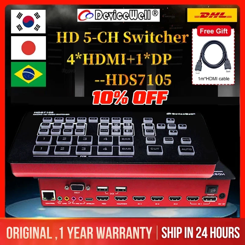Супер мини-переключатель DeviceWell HDS7105 HDS7305, 4 видео переключателя для новых медиа, прямых трансляций Youtube Ins TV