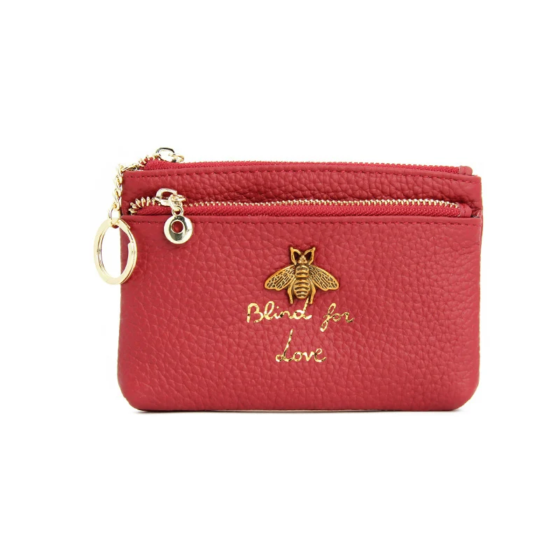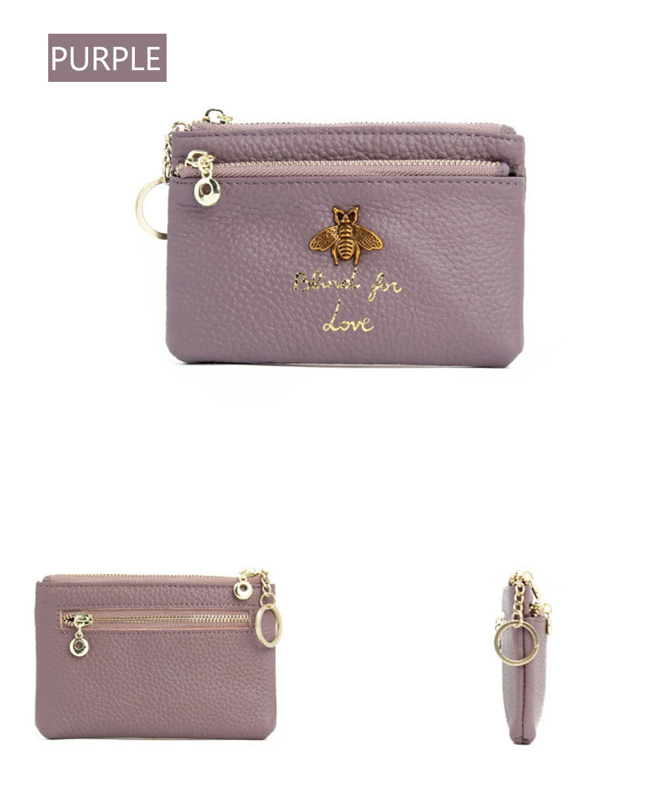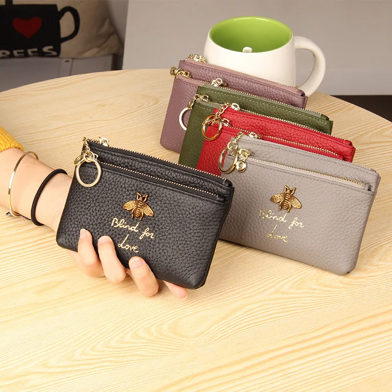 Женские кошельки из натуральной кожи, Дамский маленький кошелек, женский короткий кошелек на молнии с Пчелой для монет, тонкие однотонные мини-кошельки с карманом для монет
