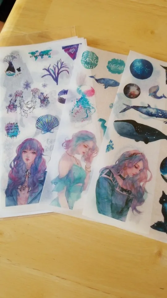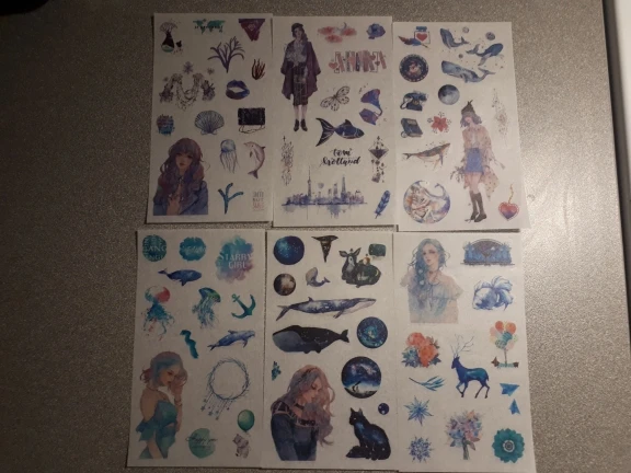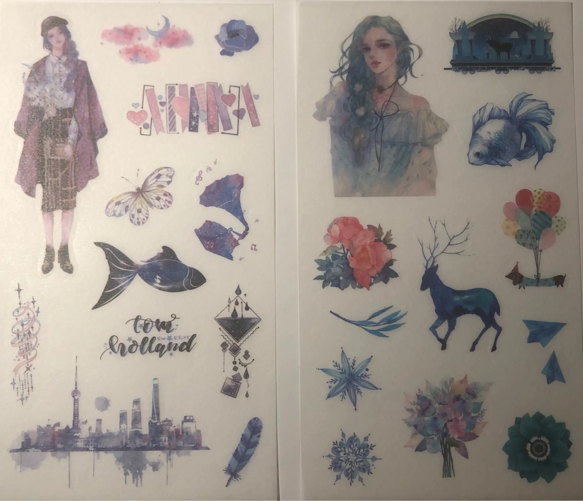 These washi stickers are fantastic because their material is almost transparent so they blend into a page or art project very nicely. Easy to work with, lots of complimentary pieces to the main images. I have actually purchased some of these previously and decided to reorder!