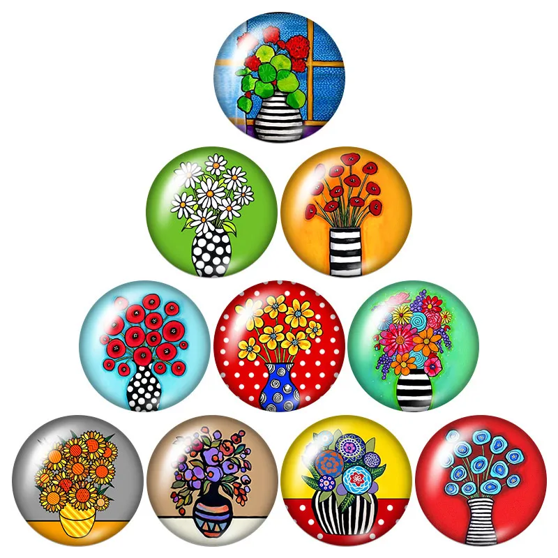 Картина маслом, стильная ваза с цветами, кот, собака, маргаритка, 12 мм16 мм18 мм25 мм, круглая фото, стеклянный кабошон, демонстрация, плоская задняя сторона, фурнитура