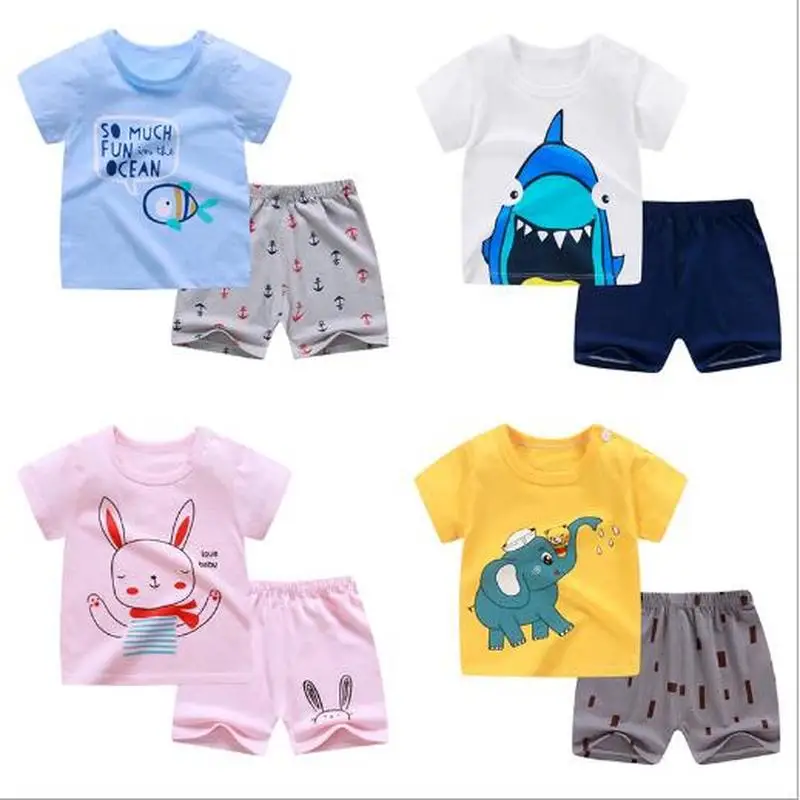 Хлопковые летние детские мягкие шорты, костюм, футболка для мальчиков и девочек, детская Милая одежда с динозавром из мультфильма, недорогие вещи для детей в возрасте от 2 до 10 лет