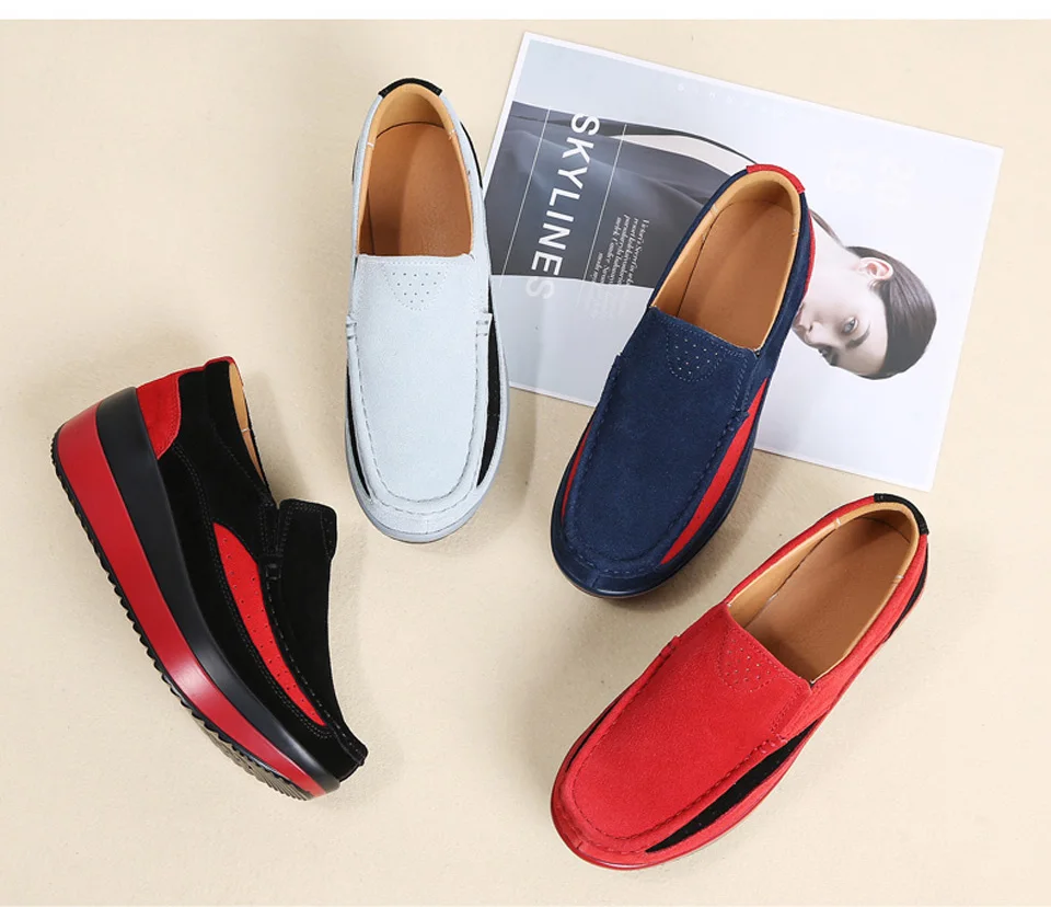 Женские мокасины на плоской подошве EOFK, замшевые лоферы на платфо...